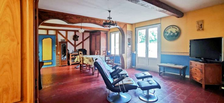 Cet ensemble immobilier comprend une maison de plain-pied de 106 m² avec une cuisine équipée, un salon salle à manger, 2 chambres, et une salle d'eau. En plus de la maison, vous trouverez deux hangars en très bon état de 650 m² et 300 m², une grande dépendance, et un bureau. Les toitures sont en bon état. Le tout est situé sur un terrain de 3452 m².