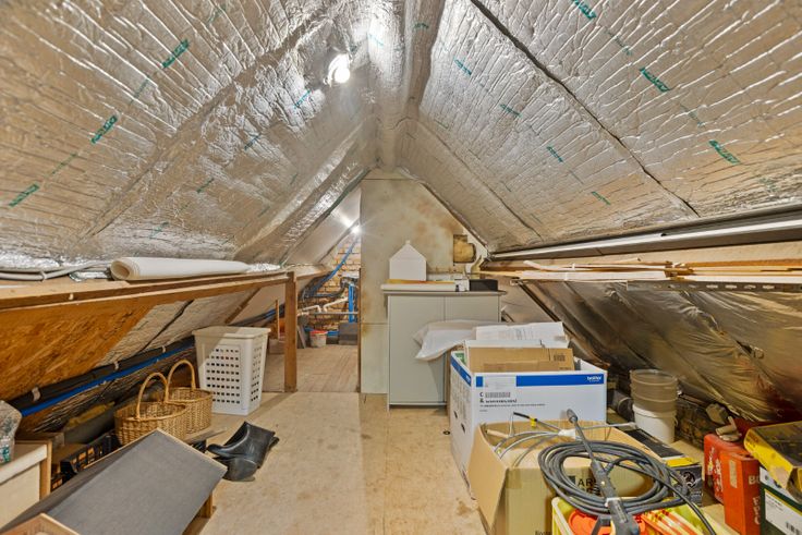 Op de zolderverdieping hebt u een ruime hall waar u een grote slaapkamer hebt of dit kan ook gebruikt worden als opslagruimte. Niettegenstaande de woning volledig onderkelderd is en u zo al veel ruimte hebt om te stockeren.