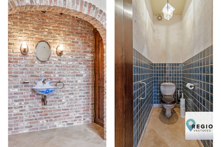 Achteraan gastentoilet met centraal lavabomeubel, Links toegang tot één gelijkvloerse kamer/ bureel/ praktijk.