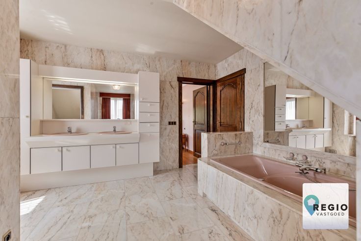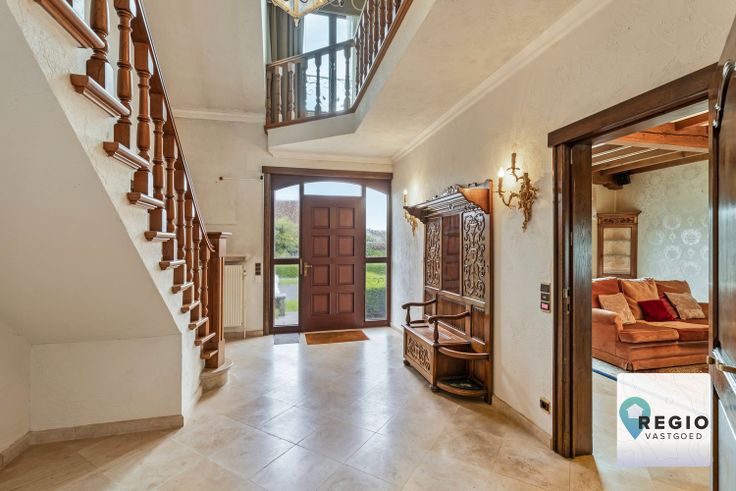 De inkomhal legt de lat meteen hoog; Statige trap, in combinatie met de open overloop, tijdloos natuurstenen vloer (volledige gelijkvloers), natuurlijke lichtinval.
