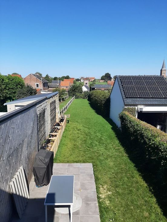 Deze moderne zeer energiezuinige woning te Landen is een mooie houtskeletbouw-woning voorzien van alle modern comfort. De woning is uitgerust met zonnepanelen. Op het gelijkvloers niveau vind je een garage met ruime berging met een totale oppervlakte van +/- 80m². Er is tevens een carport om één wagen te stallen. Op de 1ste verdieping hebben we een inkomhal met toilet, gezellige living met een eet en zithoek en een ingerichte keuken met aansluitend een berging. Op de 2de verdieping zijn er nog een mooi afgewerkte badkamer met inloopdouche en toilet, plus 2 slaapkamers, waarvan de masterbedroom voorzien is van een dressing. De diepe tuin is volledig in gras voorzien en heeft een knus zonneterras.