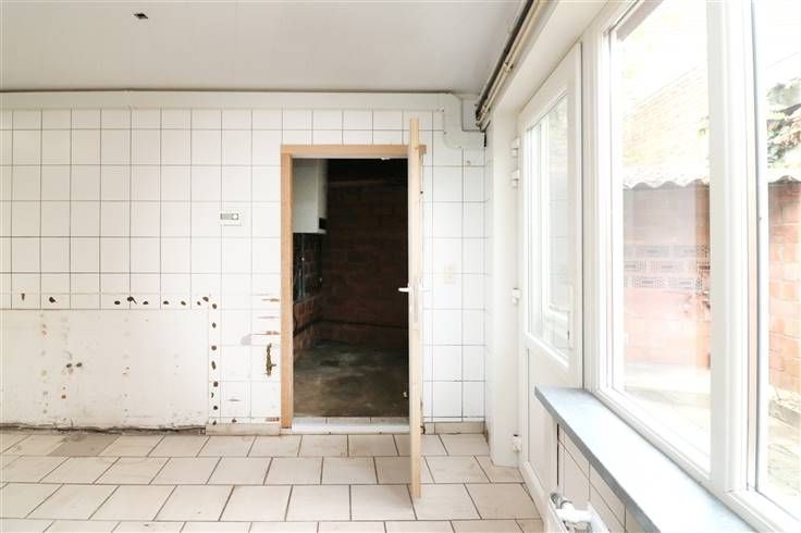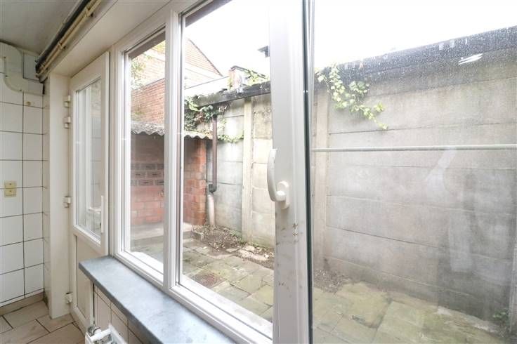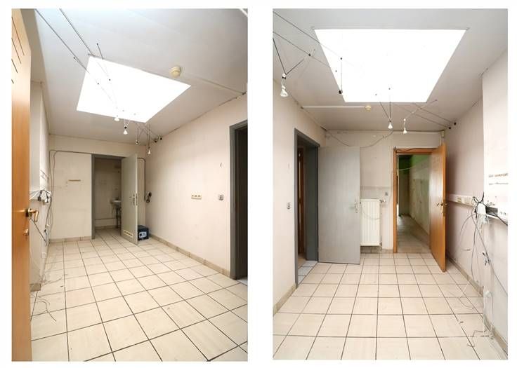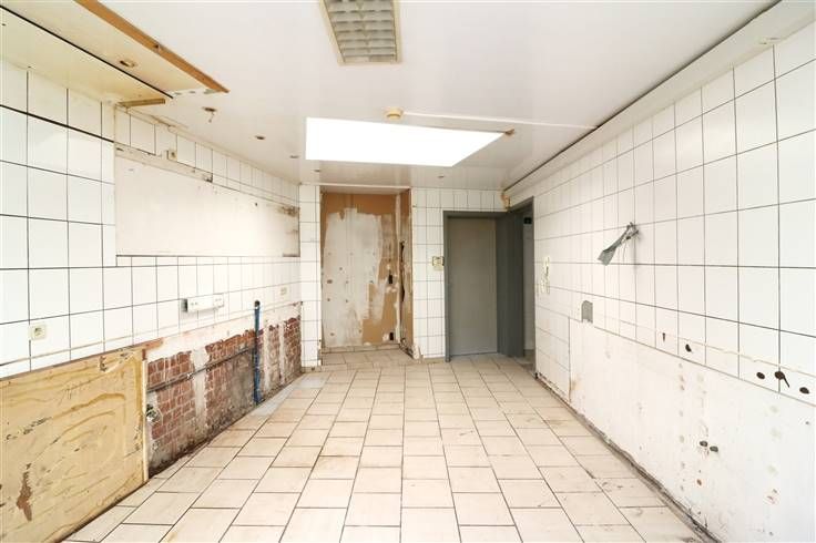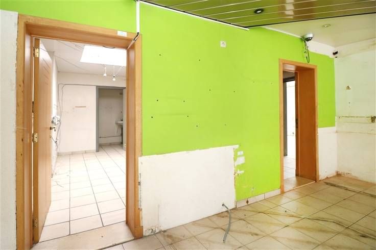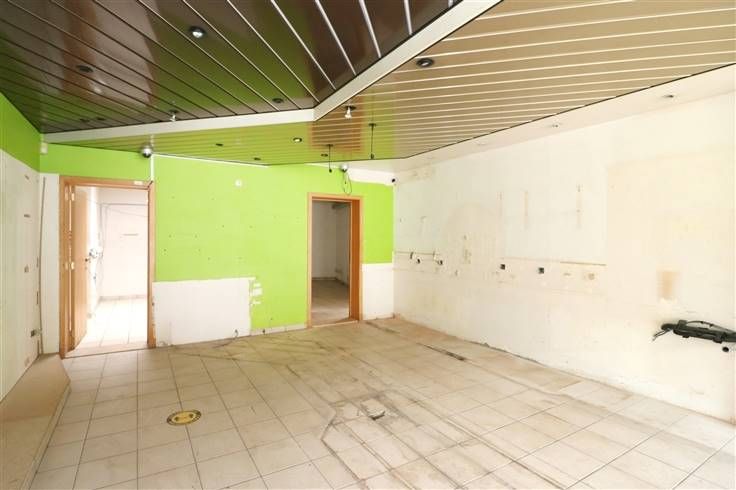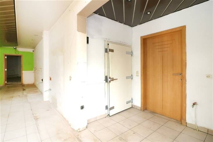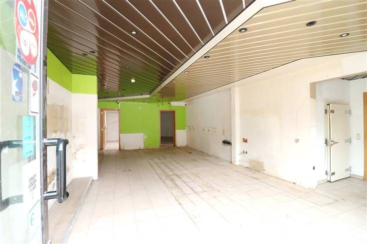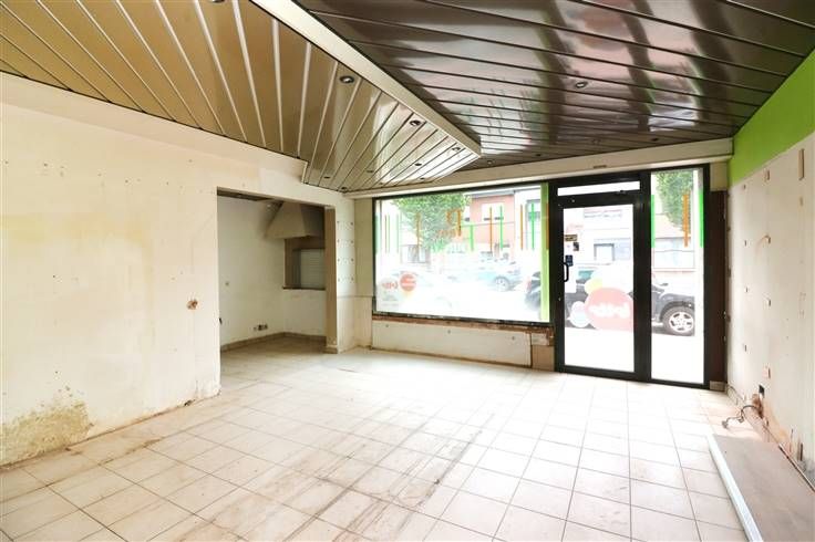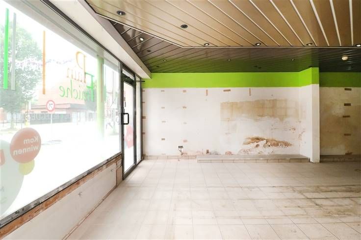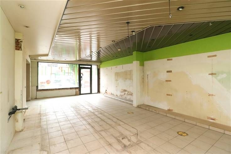 Handelsglkvlrs met winkelruimte ca. 50m² en achteraan bureau (met toilet), berging en keuken. Grote raampartijen (met rolluik) aan voorkant. Achteraan kleine koer.