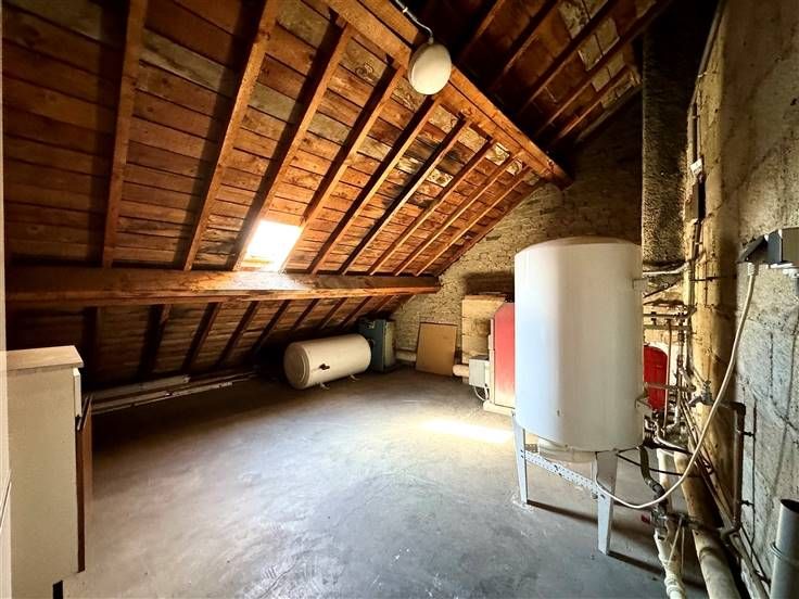 In het hart van Vieux Virton, een te renoveren gebouw bestaande uit een bovenwoning en een studio beneden. Het huis bestaat uit een hal die leidt naar een half ingerichte keuken, een apart toilet en een woonkamer. De 1e verdieping bestaat uit een nachthal, 2 slaapkamers en een badkamer. Op de 2e verdieping is de zolderruimte bereikbaar via een vaste trap, waarvan een deel kan worden verbouwd, terwijl het andere deel momenteel wordt gebruikt als stookruimte. De studioflat bevindt zich onder het huis met een eigen onafhankelijke toegang en bestaat uit een woonkamer met een semi-ingerichte keuken, een badkamer en een blinde kamer die als slaapkamer wordt gebruikt. .