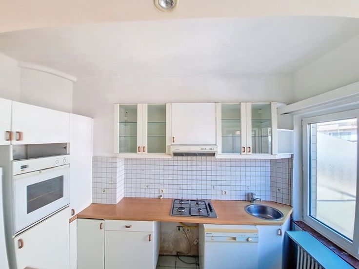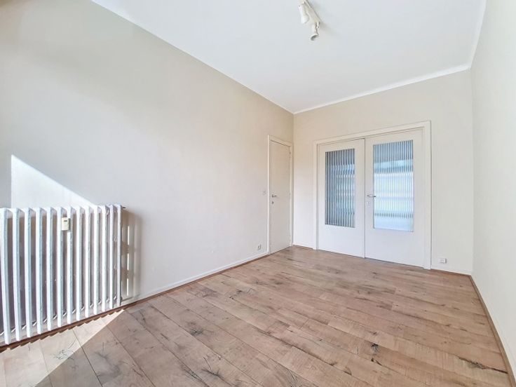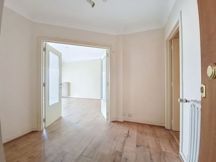 Ideaal gelegen, charmant appartement met 2 slaapkamers met een bewoonbare oppervlakte van 80 m² in een luxueus gebouw, als volgt samengesteld: inkomhal, woon-/eetkamer met open ingerichte keuken van 33 m², 2 slaapkamers van 13 m², badkamer, apart toilet , terras aan de voorzijde van 7m² en balkon aan de achterzijde van 3m². PVC-frame met dubbele beglazing. Kelder. Voorzieningen voor kosten voor verwarming, water en gemeenschappelijke ruimtes van € 200,-.