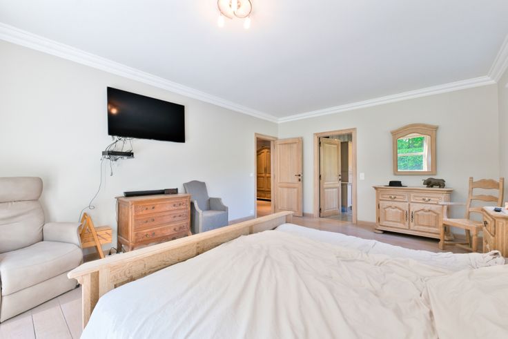 Grande villa d’une qualité exceptionnelle où les enfants et les parents ne manqueront pas d’espace. Sa superficie de plus de 1100m2, dont 870m2 habitables offre de multiples possibilités : kangourou, profession libérale, grande famille. Déployée sur quatre niveaux, elle dispose d’un ascenseur et permet également de vivre de plein pied. Le rez offre une suite luxueuse (chambre – dressing – sdb) en matériaux nobles intemporels, une cuisine super équipée Gaggenau, un beau living en L avec de grandes baies vitrées et une cheminée récente M-Design. Au rez se trouvent également les trois doubles-garages, dont un avec pont élévateur. Le premier étage offre quatre autres belles suites avec chacune sa salle de bains et wc, une buanderie et un grand bureau avec entrée indépendante et sa propre cuisine. Le deuxième étage se compose d’un bel appartement avec salon, deux chambres, cuisine, salle de bains et une grande pièce polyvalente utilisée actuellement comme bureau. Le sous-sol comprend des caves très spacieuses, la salle de jeux, un salon cinéma et la salle de fitness. Autres : alarme, éclairage extérieur, panneaux solaires, chalet de jardin… La villa est implantée sur un terrain sans vis-à-vis de plus de 20a dans un clos résidentiel très calme à la limite de Lasne et à seulement 12 min en voiture de Louvain-la-Neuve. De nombreux espaces verts et prairies se trouvent à quelques centaines de mètres. Une opportunité à ne pas manquer ! Infos/visites : 0496 91 21 33