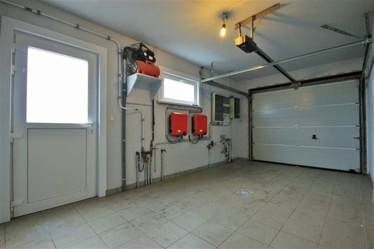 D’autre part, vous trouverez la partie nuit avec salle de douche et 2 chambres ainsi que l’accès à un spacieux garage. Le hall de nuit permet également l’accès vers un grand grenier de stockage.