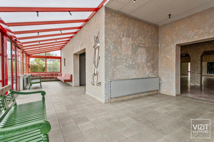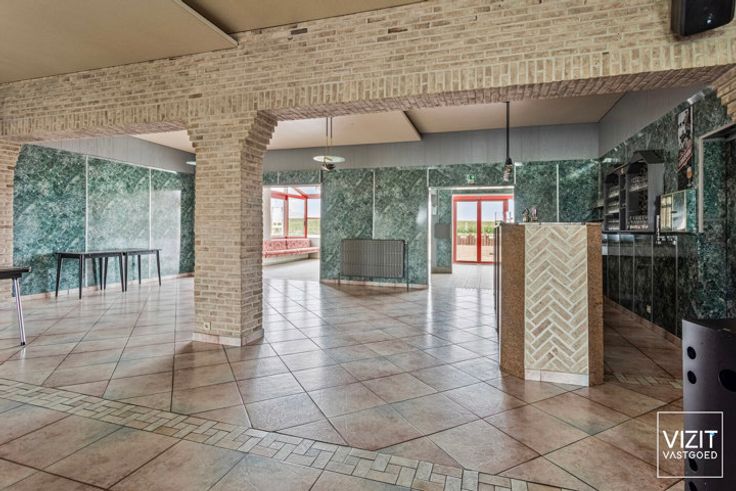 Feestzaal De Vos, voorheen een actieve feestlocatie, biedt nog steeds veel mogelijkheden. Op straatniveau bevindt zich de voormalige ruime feestzaal met ontvangstruimte, keuken en sanitair blok (301 m²). Op het niveau van de parking is er een woonst met ruime opslagmogelijkheden. De indeling van de woonst omvat een woonkamer met open keuken (66 m²), drie slaapkamers (19 m², 13 m² en 10 m²), een bureau (18 m²), een badkamer, een toilet, een hal en diverse bergingen met een totale oppervlakte van 52 m². Aan beide zijden van het gebouw is er toegang tot de ruime parking, die plaats biedt aan ongeveer 80 wagens. Achter de parking ligt nog een weiland. Er is geen overname van het handelsfonds voorzien. Het handelspand is zonevreemd vergund als feestzaal en dient daarom deze bestemming te behouden. Bekijk de documenten en virtual tour op www.vizitvastgoed.be. VCRO: Lwag/Vg/VV/Gvkr/Gmo - G-score: A - P-score: A