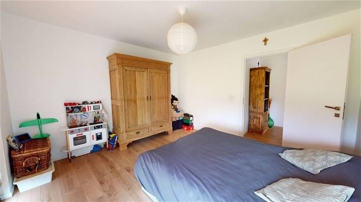 1er ét.: hall (+/-18 m²), 3 chambres (+/-22 m² et 2x +/-15 m²) dont 1 suite parentale avec dressing (+/-13 m²) et terrasse (+/-30 m²), 2 sdb équipées (+/-10 m² avec douche italienne et +/-9 m² avec bain), buand. (+/-11 m²).