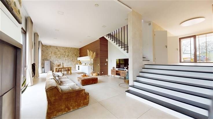 Spacieuse et lumineuse, réalisée avec goût et matériaux de qualité, superficie habitable +/-304 m² (d'après PEB), agréable jardin plat avec vue dégagée et sans vis-à-vis.