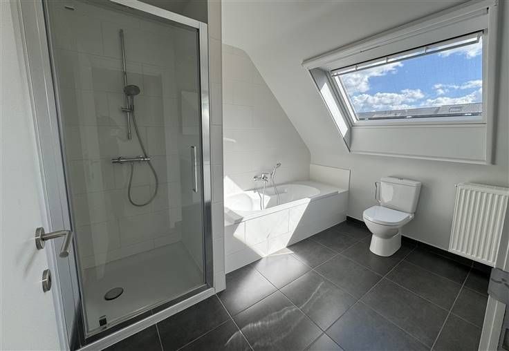 De bovenverdieping beschikt over drie ruime slaapkamers, allemaal met een mooie afwerking en veel lichtinval. De badkamer is een oase van rust, met een douche, een ligbad en moderne meubels. Een ideale plek om te ontspannen na een drukke dag.