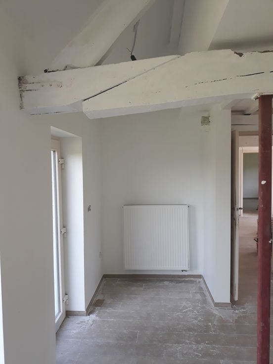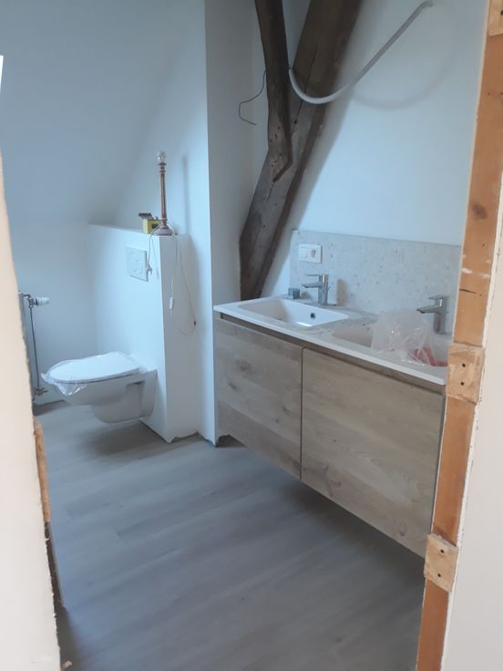 De woning onderging een volledige renovatie (elektriciteit, leidingen, vloeren, sanitair,...). Op het gelijkvloers is er een ruime keuken met ontbijthoek, een leefruimte, aparte eetplaats, extra bureaukamer, berging (met technieken) en toilet. Op de eerste verdieping zijn er 3 slaapkamers, 1 badkamer en 1 apart toilet.