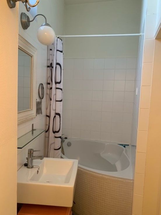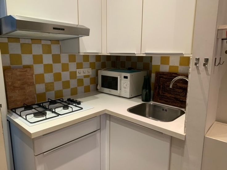 De badkamer is uitgerust met een groot bad, toilet en wastafel. De keuken is geïnstalleerd en heeft een extra opbergruimte.