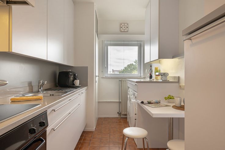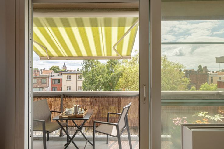 Vandaag ontmoeten we elkaar in wat mogelijks weleens het gezelligste straatje van Merksem zou kunnen zijn: doodlopend, met zicht op véél groen – en toch dichtbij al het nodige. Het appartement waaraan we je voorstellen, ligt op een derde verdieping in een goed onderhouden blokje – en is altijd liefdevol onderhouden geweest door de verkoper. Alleen maar pluspunten, zeg je? Klopt! Kom gerust binnen… De leefruimte trakteert op een schoon vloerke, véél ruimte en nog meer licht. Een zit- én eethoek? Begin maar al in te richten, want hier heb je er de plek voor… En dan is er nog dat unieke uitzicht, natuurlijk: je kijkt hier je ogen uit op het prachtige kasteel Groenendael, waardoor het hier altijd fijn wegdromen is… Volk over de vloer? Dan kom je in de keuken alvast niets te kort om je gasten in de watten te leggen. De keuken werd tenslotte volledig op maat geïnstalleerdd – en is goed uitgerust. Zo tover jij hier in een handomdraai de lekkerste gerechten op tafel! Even een momentje voor jezelf nemen, dat doe je dan weer in de ruime – en volledig betegelde – badkamer. Wat je daar mag verwachten: een douche voor snelle ochtenden en een net ligbad voor de iets slomere momenten. En ’t beste nieuws? Het toilet is apart. Handig! Onder de wol kruipen, dat doe je in één van twee slaapkamers. Beide liggen op een schone, warme houten vloer – en komen met de nodige ruimte om volledig in te richten zoals jij wil. En één van die kamers leidt ook nog eens naar het toffe terras, met véél zicht o