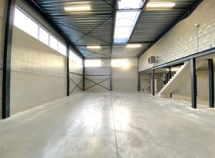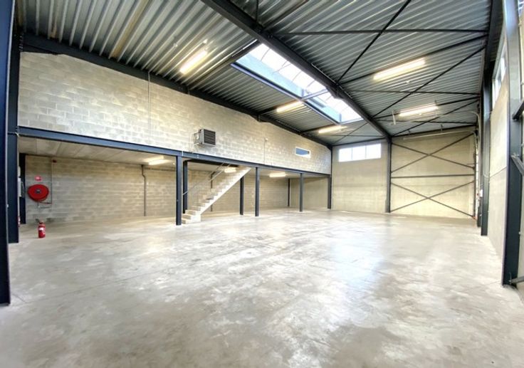EN COURS DE CONSTRUCTION - AVIS AUX INDEPENDANTS (HALL d’entreposage + BUREAUX - surface totale de 325 m²) avec 6 parkings extérieurs ! Entre Fernelmont et Andenne, dans le parc industriel "Mécalys", HALL de 271 m² + ANNEXES de 14 m² + 2 BUREAUX de 40 m². Tout prochainement en cours de construction, le bâtiment se composera comme suit : - Rdc : vaste hall de stockage avec porte sectionnelle et entrée classique indépendante, local technique, vestiaire, et douche/wc. - 1er étage : 2 bureaux ou 1 + 1 salle de réunion. Caractéristiques : Sols en béton (lisse) - Porte sectionnelle (H : 4m et L : 4,25m) - Hauteur sous plafond : 6,95 m - 6 parkings extérieurs, chauffage gaz, compteurs individuels, châssis alu double vitrage, luminaires, câblages pour alarme, etc. (Loyer 2700 € htva. - Forfait mensuel de 100 € (entretien des extérieurs) - Précompte immobilier à charge du preneur. - Bail de 3 ans (reconductible). - GL : 3 mois de loyer. - Etat des lieux : par expert et à frais partagés). Situation idéale : dans un endroit calme, et à proximité des axes autoroutiers (E42), commerces, transports en commun, etc. Informations complémentaires sur demande. Disponible au 1er janvier 2025. Belle opportunité à ne pas manquer ! Informations complémentaires sur demande.