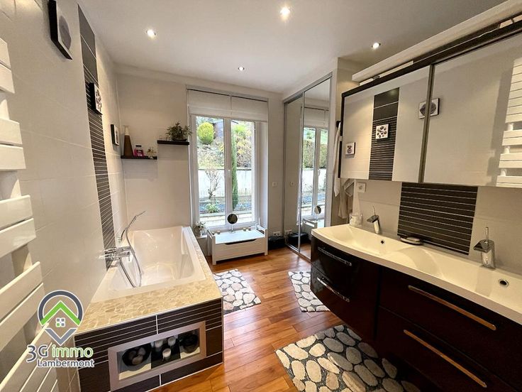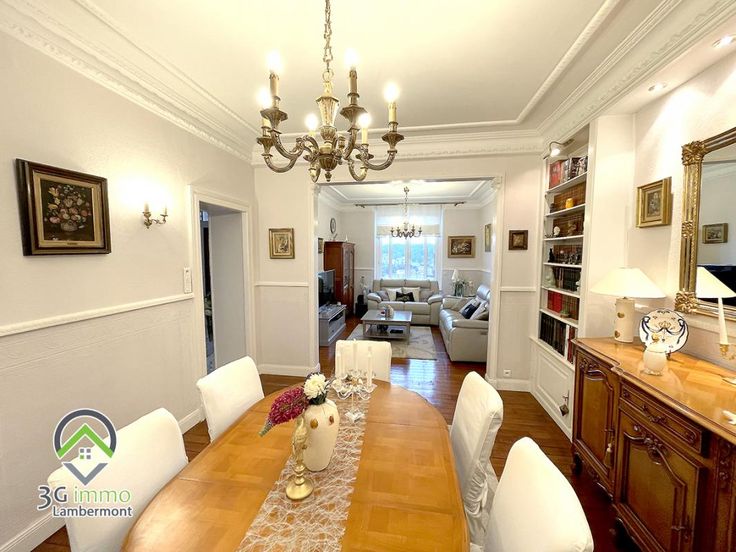 Coup de cœur présenté par 3G Immo Lambermont pour cette superbe maison de Maitre individuelle (parquet chêne, moulures, hauteur sous plafond...) située à Longwy-Bas d'environ 170m² habitables (4 ou 5 chambres) et d'une surface sol de 77m² avec garage 1 véhicule. Le rez-de-chaussée surélevé se compose d'un hall d'entrée, d'une superbe pièce de vie (33m²) sur parquet chêne avec accès terrasse carrelée et d'une cuisine équipée avec son coin repas (18,7m²) donnant elle aussi accès à la terrasse. Egalement présents sur ce niveau, un Wc séparé, une salle d'eau entièrement carrelée et une chambre de 16,8m² sur parquet avec dressing intégré. Au premier étage, nous retrouvons un vaste palier distribuant 2 belles chambres de 15 et 17,2m² (dans cette dernière, un dressing sur mesure est intégré) et une magnifique salle de bain avec douche italienne, baignoire, meuble double vasque et Wc. Le grenier (isolé sous toiture) comprend une vaste chambre d'environ 26m² au sol et une partie stockage de 26m² au sol aménageable en cinquième chambre. Au sous-sol, avec une entrée privative donnant sur un hall d'entrée (12m²), se trouvent une buanderie carrelée, une chaufferie, une cave à vin et une cave pour stockage. Terrain d'environ 9,4 ares avec terrasse carrelée de 36m² et terrain / pelouse aménagé en paliers sans vis-à-vis. Huisseries en DV PVC, chauffage fuel de 2002 Wiessman, toiture en tuile révisée en 2022. Maison claire et lumineuse, saine et très propre, aussi bien à l'intérieur