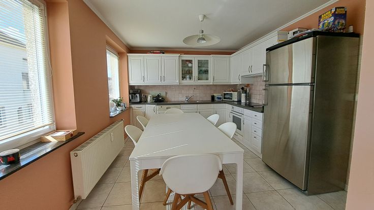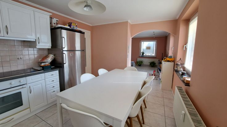 Composition : hall, cuisine équipée et séjour agréables et lumineux, 3 chambres, hall de nuit, buanderie, greniers. Chauffage central mazout. Double vitrage.