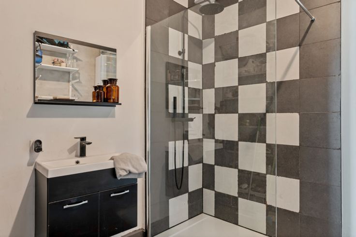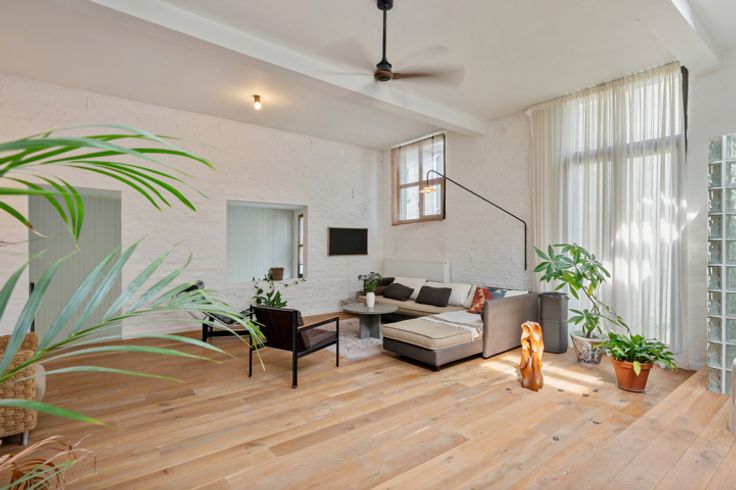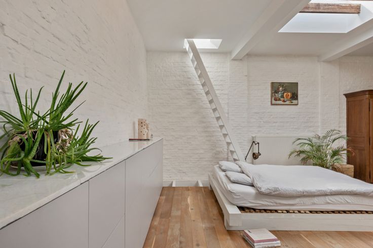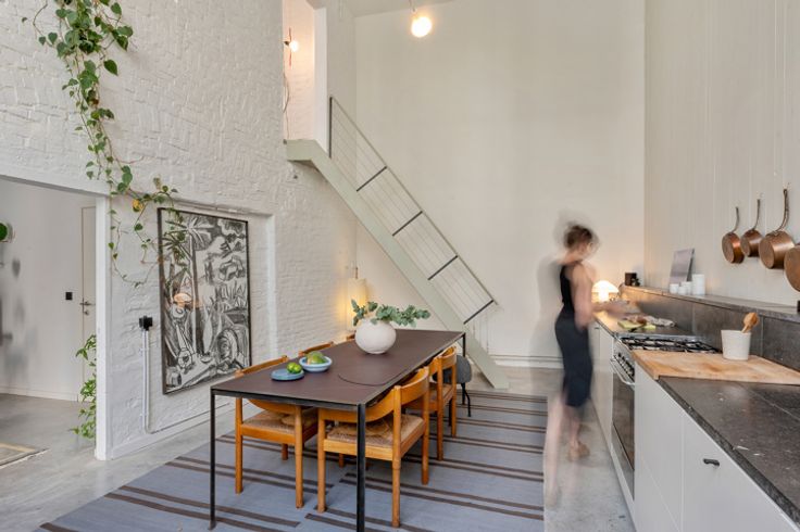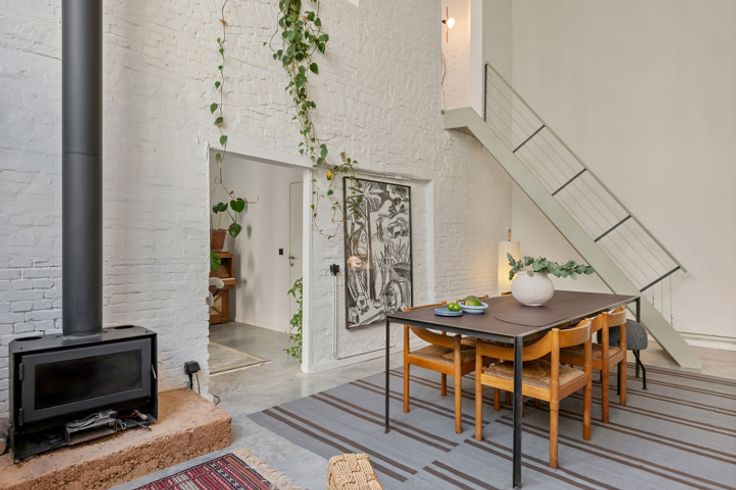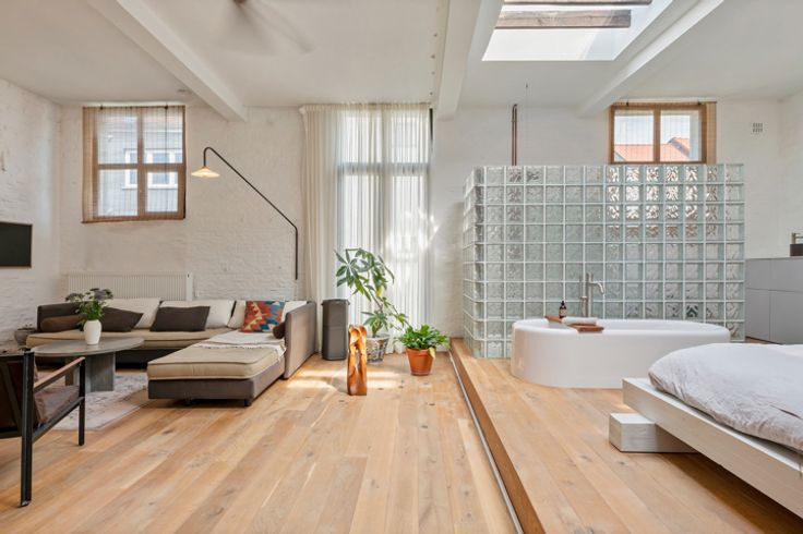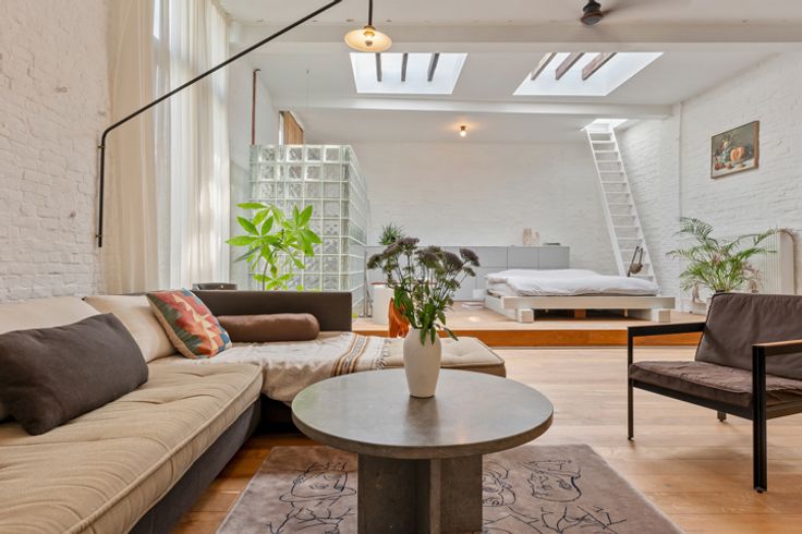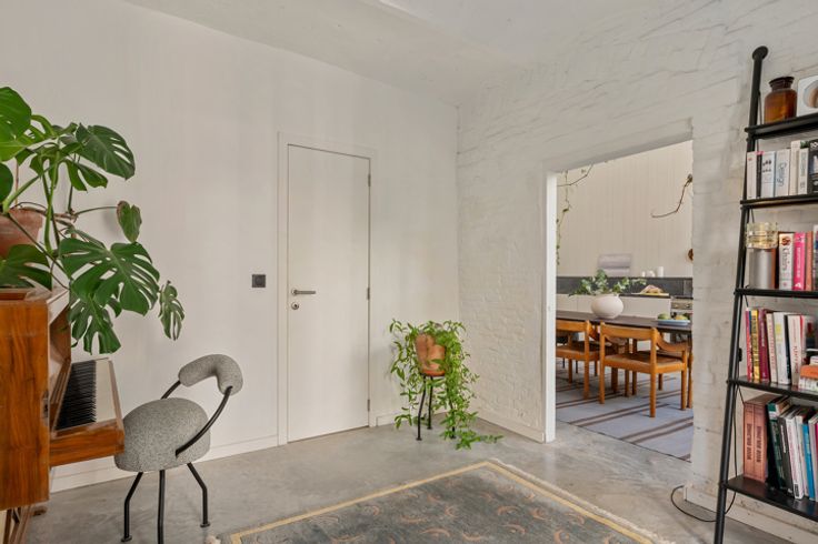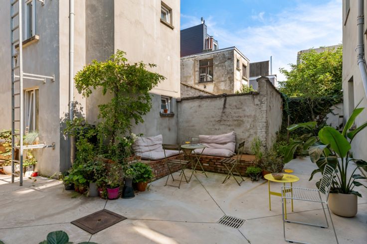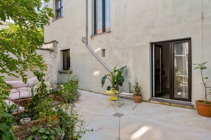 Deze voormalige schrijnwerkerij in hartje Borgerhout werd met veel liefde en oog voor design omgebouwd tot een prachtige loft – die kan dienen als atelier, kantoorruimte of tweede verblijf. Deze verborgen parel vind je goed verborgen achter een nietszeggend wit geveltje in een opkomende buurt. Deze loft trakteert op twee verdiepingen. Op de begane grond vind je een atelierruimte met adembenemend gewelfd plafond, een berging met extra doucheruimte, een toilet en de keuken met eethoek. Een trapje hoger vind je de unieke woonkamer, slaapkamer en badkamer. Ook de prachtige woonkamer trakteert op plafonds van meer dan drie meter hoog. Tel daar nog eens de twee lichtkoepels bij en je snapt het al: hier staat lichtrijk wonen absoluut centraal. De authentieke dakbalken zijn een plezier om naar te kijken – net zoals de originele bakstenen, die zorgen voor een plezierige textuurmuur. Aansluitend aan de woonruimte vind je dan de schitterende badkamer: een U-vormige glasdalwand die zich in de ruimte verhoudt als een waar sculptuur in de ruimte. Het bad speelt hier de hoofdrol: ’s avonds kan je vanuit het warme water genieten van de sterrenhemel… De mooie groene binnenplaats is niet enkel de plek langs waar je binnenkomt, maar tevens een heerlijke plek om van ’t zonnetje te gaan genieten. En dan, het allerbelangrijkste: dit pand is vergund als magazijn en niet als appartement. Dat betekent dat je jammer genoeg niet geniet van het verlaagd tarief van 3% verkooprechten. Verliefd op deze N