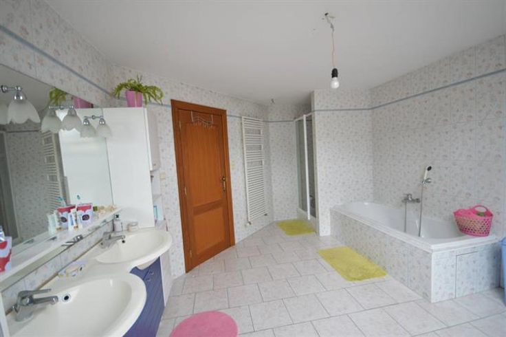 SALLE DE BAIN/DOUCHE 3.48 x 4.31 (15.04m²) baignoire, douche, radiateur sèche serviette, double vasque sur meuble.
