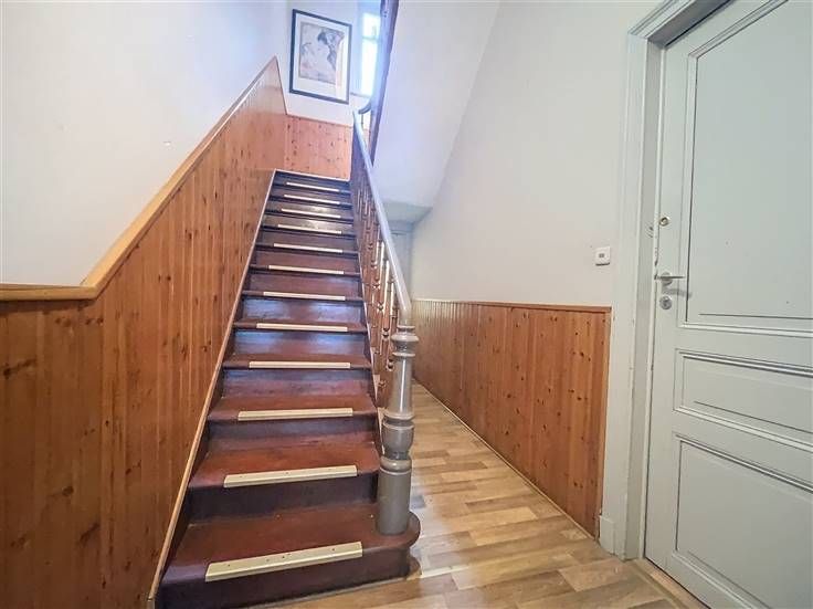 Buurt.../ - Aantrekkelijk huis van twee verdiepingen van +/-260m², als volgt samengesteld: Op de begane grond; een inkomhal met vestiaire, een mooie en lichte woon/eetkamer +/-30m² met open haard/gas, parketvloer, een super/hyper uitgeruste keuken (gas/elektrische kookplaat, oven, koelkast/vriezer, afzuigkap...), een tuin.), een tuin; Op de 1ste verdieping; een nachthal, 2 grote slaapkamers (+/-15m², +/-12m²), een bureau (+/-8m²), een badkamer/douche, een apart toilet met wastafel; Op de 2de verdieping; een grote slaapkamer, een mezzanine, een douchekamer, Op zolder; een bergruimte,... In de kelder; verschillende kelders, een wasruimte,... - Plaats/garage box - PEB : D (174 Kwh - 37 Co2) - Beschikbaar onmiddellijk of te koop/huidig verhuurd 650€/maand