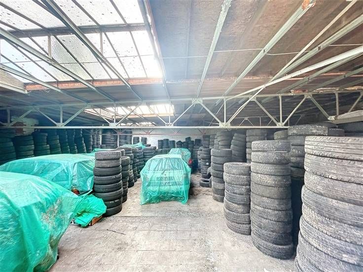 Magazijn achteraan +/-420m² - momenteel verhuurd aan €1800/maand voor bandenvoorraad.