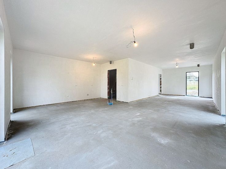 Deze prachtige nieuwbouw is gelegen langsheen de Eikestraat te Steenhuize-Wijnhuize (Herzele). De woning is vlot bereikbaar en bevindt zich niet zo ver van o.a. een supermarkt, school, horeca, wandelroutes, ... Zowel de dorpskern van Steenhuize als de winkels te Ophasselt liggen slechts op enkele minuten fietsen of met de wagen. Deze nieuwbouw BEN-woning maakt deel uit van een verkaveling van 3 entiteiten en werd recent opgetrokken door selecte, regionale aannemers met gebruik van hoogwaardige, kwalitatieve materialen en voldoet aan de hedendaagse energienormen. De woning staat klaar voor de afwerkingsfase, volgens de keuze van de koper en de voorziene budgetten in het lastenboek (keuken, badkamer, vloeren, deuren, ...). De bewoonbare oppervlakte volgens plan is 147m² en de totale grondoppervlakte is 586m². Indeling: inkomhal met houten trap, gastentoilet, lichtrijke leefruimte/eetplaats met groot schuifraam en open keuken met zicht op de tuin, aangrenzende berging met technieken en voorzieningen wasmachine en droogkast. De eerste verdieping telt 3 slaapkamers, een badkamer met ligbad, inloopdouche en dubbele lavabo en een afzonderlijk toilet. Een summier overzicht van de materialen en technieken: warmtepomp Vaillant (lucht/water) vloerverwarming, zonnepanelen, ventilatiesysteem D, ALU (buitenkant) en PVC (binnenkant) raamprofielen (met TRIPLE glas) + vliegenramen, vloerisolatie, muurisolatie, dakisolatie, regenput 10.000L, wachtvoorziening laadpaal, ... Deze elementen zo