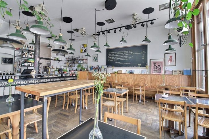 Begane grond: Een ruimte van +/- 70m2 bestaande uit een eetzaal met 45 zitplaatsen, een grote bar en een keuken aan de achterzijde.