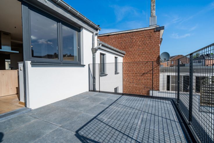 INFOS & VISITES - Yves Perugini 0475 79 35 24 - En plein cœur du centre de Herve à deux pas de toutes commodités, magnifique duplex trois chambres entièrement rénové avec terrasse, parking et caves. Situé au deuxième étage d'un immeuble de trois appartements sans ascenseur, ce duplex se compose d'une cuisine ouverte et équipée donnant sur un grand et lumineux séjour, ainsi que d'une chambre, d'une salle de douches, d'une buanderie et d'un WC. L'étage dessert deux grandes chambres. Une grande terrasse de 15 m² avec vue dégagée, deux caves, et un emplacement de parking dans la cour arrière complètent l'ensemble. CC gaz (chaudière indiv.) - DV PVC - Electricité conforme - Rénovation 2024 - Vidéophone - Cuisine équipée PEB : B RC : non défini Prix HTVA toutes finitions comprises et parking compris.