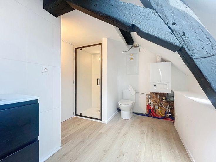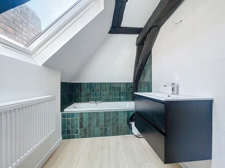 TOURNAI – Appartement 1 chambre meublé entièrement remis à neuf : L’appartement est situé au 3ème étage d’un immeuble sans ascenseur comprend : Un hall d’entrée, un séjour spacieux et avec beaucoup de charme grâce à ses poutres ouvert sur la cuisine équipée ( four, taques, hotte, évier, lave-vaiselle, frigo et rangement), une buanderie avec installation ml, une chambre ainsi qu’une salle de bain comprenant baignoire, douche et évier). Le logement bénéfice d’un chauffage au gaz. Châssis double vitrage PVC Disponible de suite. Loyer mensuel de 675 euros + 30 euros de provision pour charges communes Aspects énergétiques: PEB n° 20240822019551- Espec: 214 kWh/m².an - E totale: 8 301 kWh/an