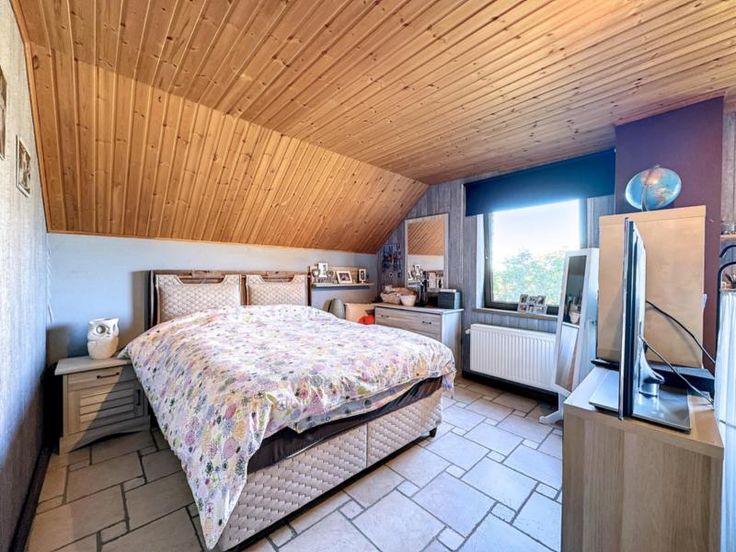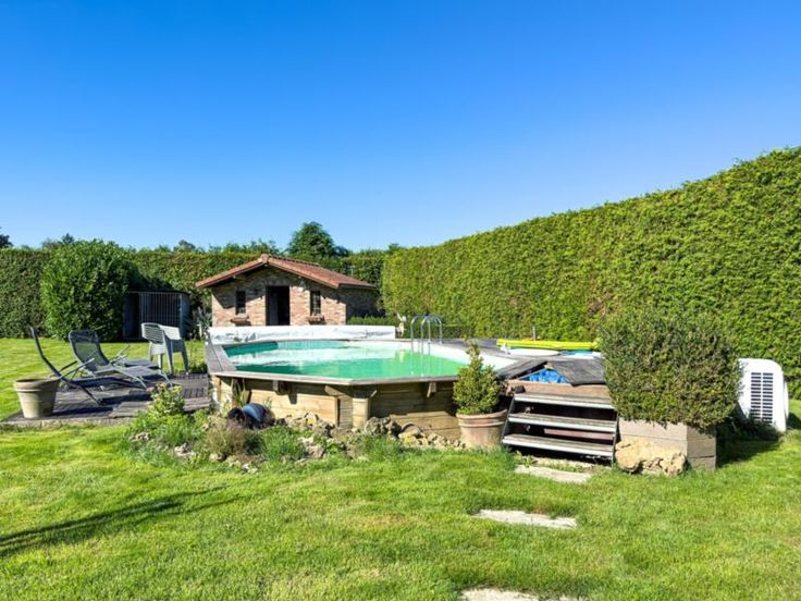 Ce bien est vendu par internet à partir du 21/10/2024 jusqu'au 29/10/2024. Belle maison d’habitation 4 façades avec piscine, construite en 1998, avec jardin sur un terrain d’une superficie de 14 ares 47 centiares. 3 chambres – garage – beau jardin avec chalet – piscine – panneaux photovoltaïques PEB C Electricité conforme