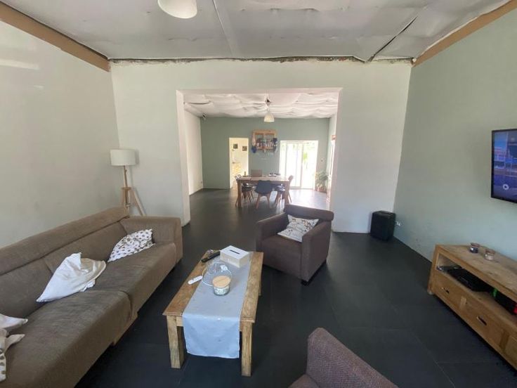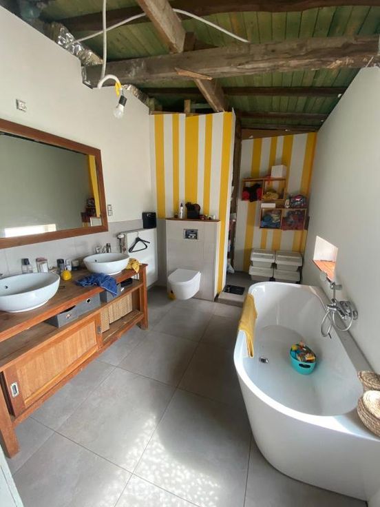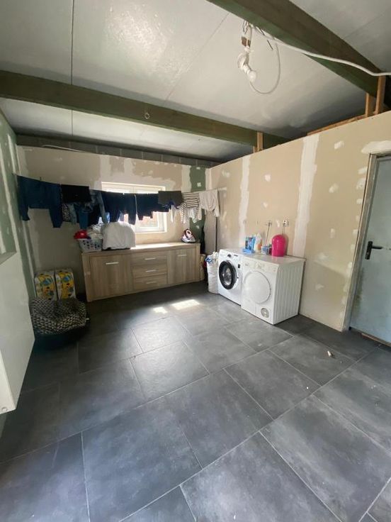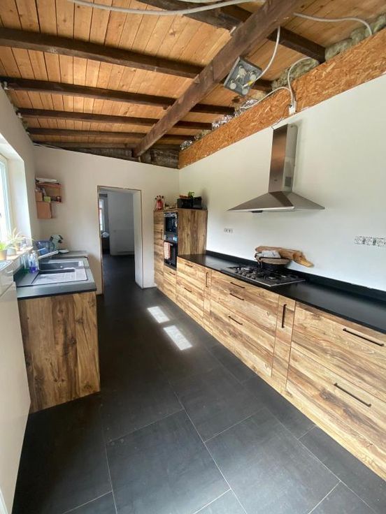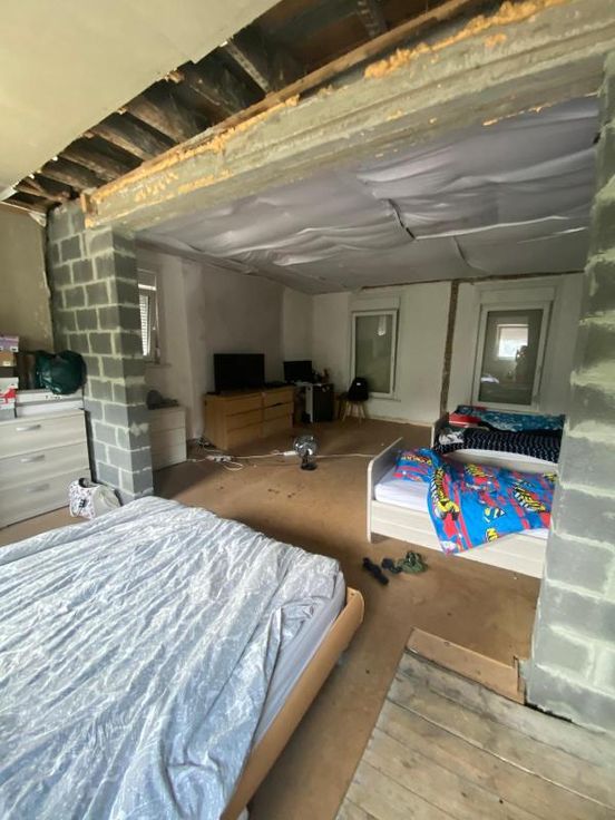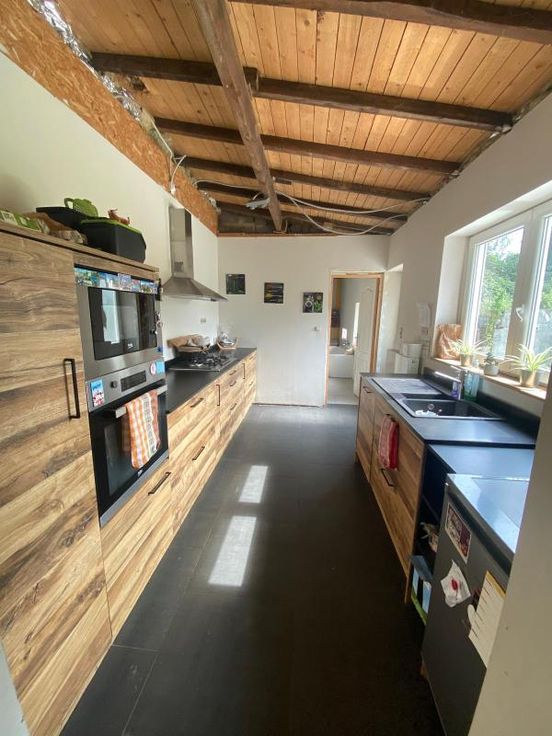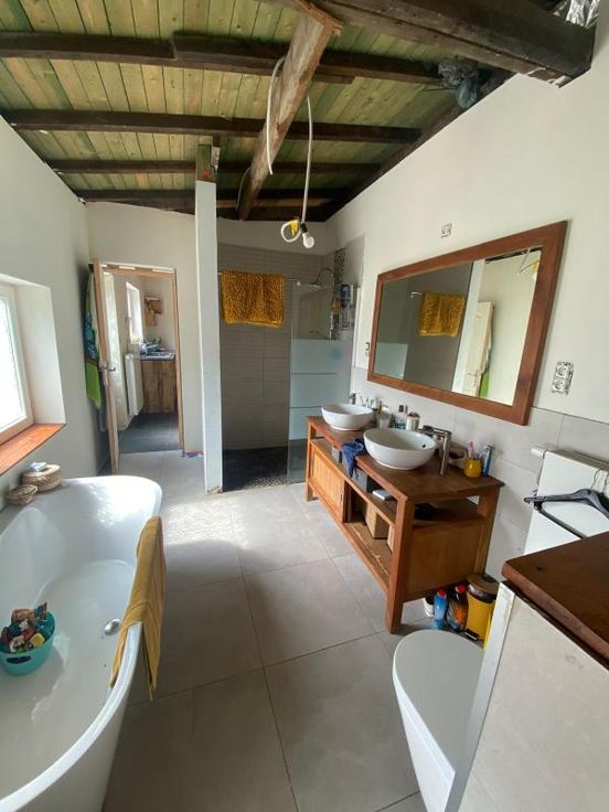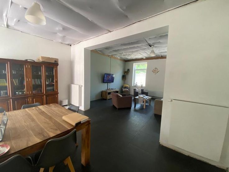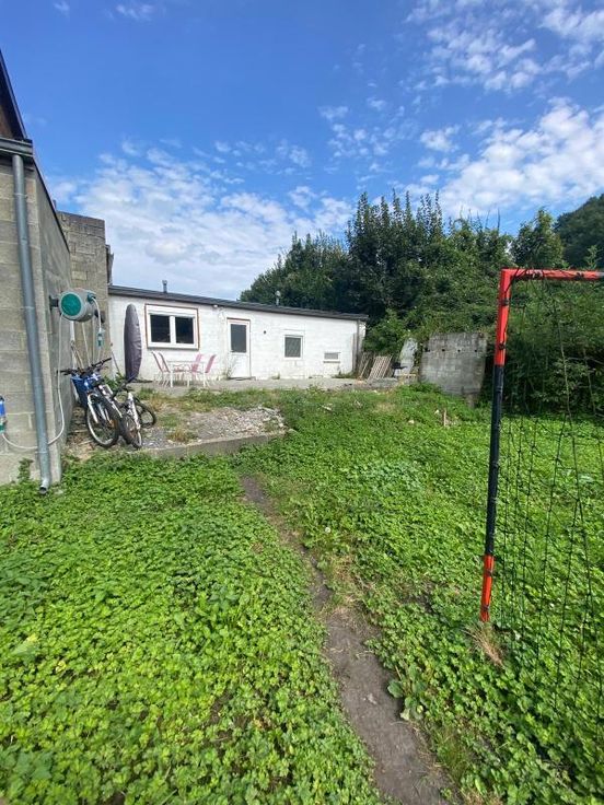 maison d'habitation 3 façades sur 5a 25ca, à parachever, se composant : -RDC : grand hall d'entrée, toilettes séparées, vaste living, cuisine équipée, salle de bains (avec double lavabo, douche, baignoire, wc) avec partie chaudière, buanderie -1er étage : hall de nuit, 1 grande chambre -2ème étage : grenier à aménager (possibilité 4 chambres) chauffage central au gaz - extérieur : garage pour 1 voiture, terrasse, jardin