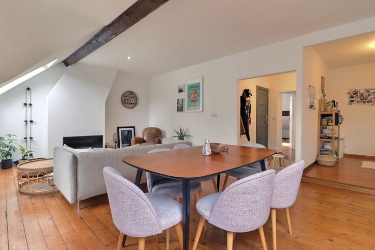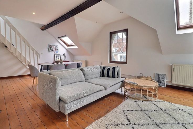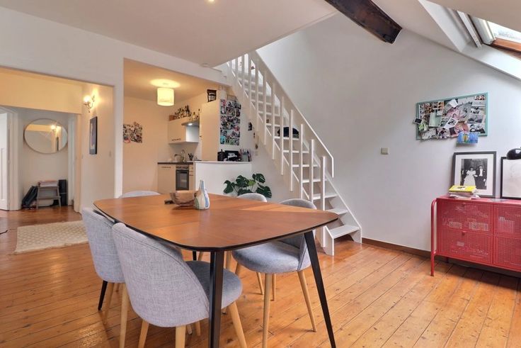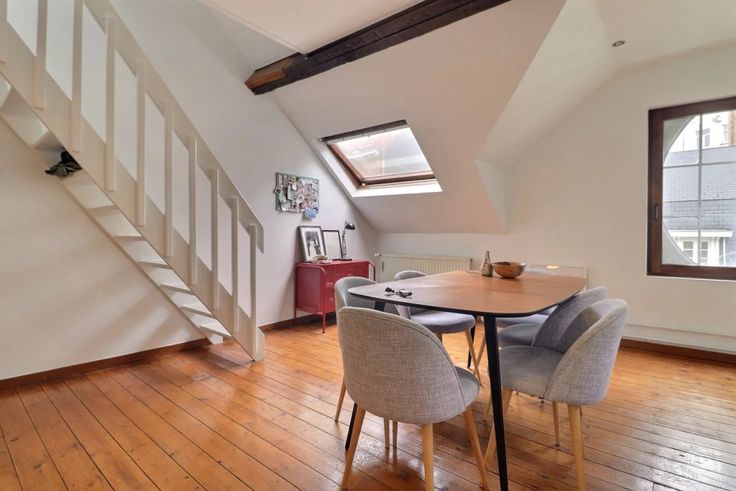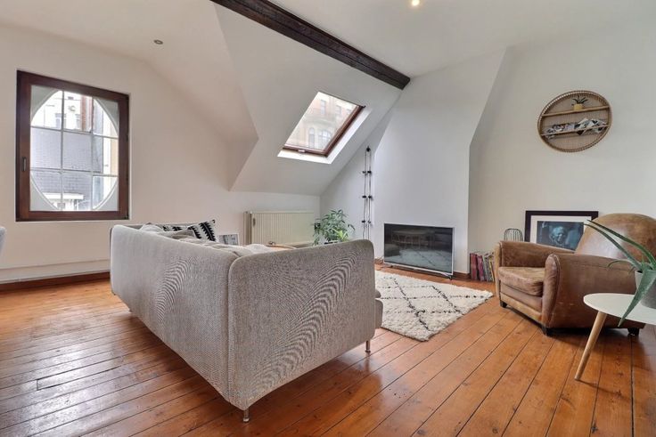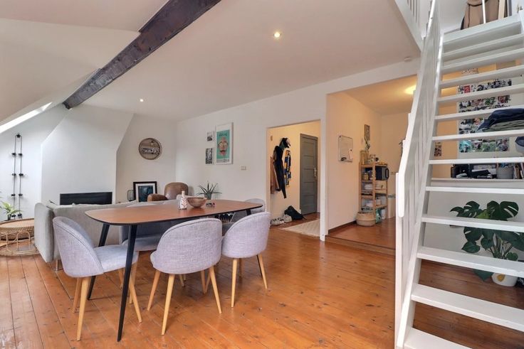 Op de tweede verdieping bevindt zich een duplex (verdiepingen +2 en +3) met een inkomhal, een ruime lichtrijke woonkamer, een volledig ingerichte keuken, twee slaapkamers, een badkamer en een wasruimte.