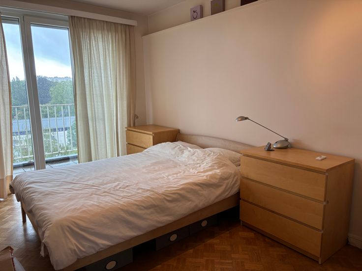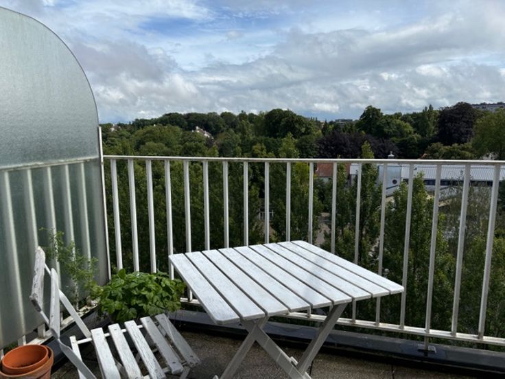 Het appartement werd gerenoveerd in 2007 en bestaat uit een inkomhal, een lichte leefruimte met een groot terras van 15m2 en een open haard, een volledig uitgeruste keuken, twee slaapkamers (13m2 en 8m2), een badkamer, afzonderlijk toile, een kleine wasruimte en een terras van 13m2 aan de achtergevel. Een individuele gesloten garagebox (inbegrepen in de prijs)