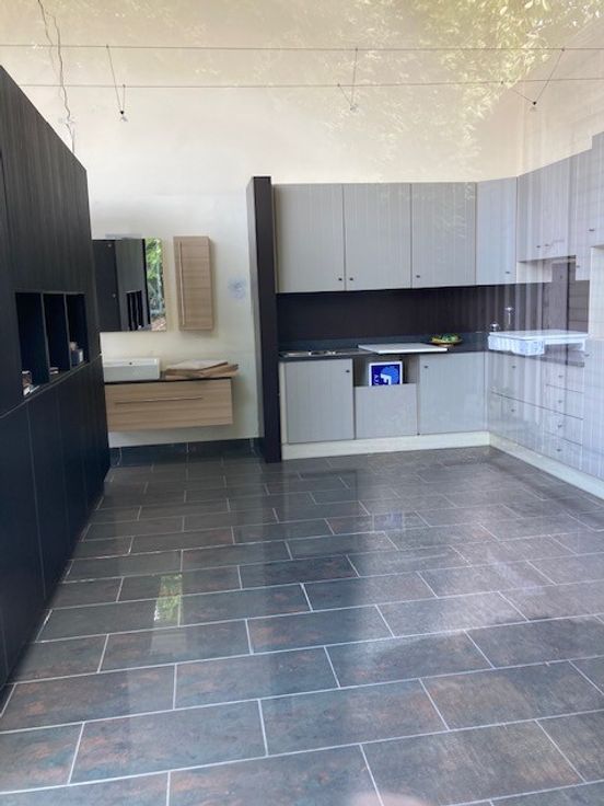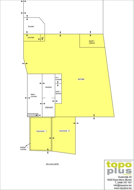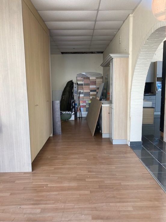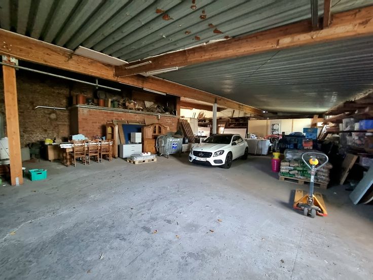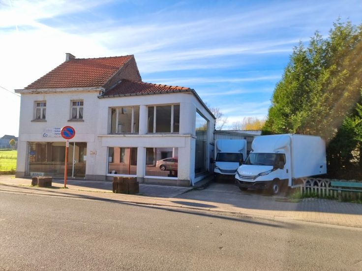 Het pand bestaat uit werkplaats met bijhorende toonzaal. Boven het linkse deel van de toonzaal is er nog een zolderruimte (Er konden geen foto’s genomen worden wegens ontoegankelijkheid van het verdiep door de slechte bouwfysische toestand.) Het pand is verhuurd (handelshuurovereenkomst) sinds 01/01/2020. De werkplaats is toegankelijk, zowel via de poort aan de voorzijde, als via de poort aan de linkerzijde. De eigendom bevat ook de private weg (betonverharding), links van de toonzaal.