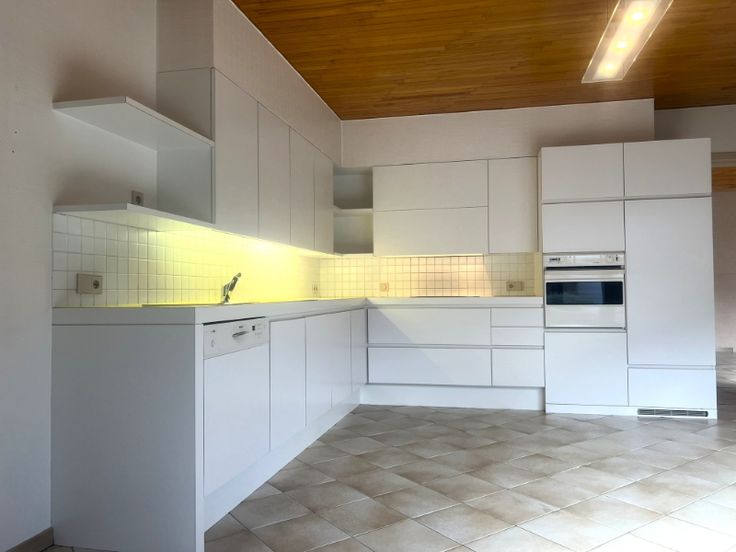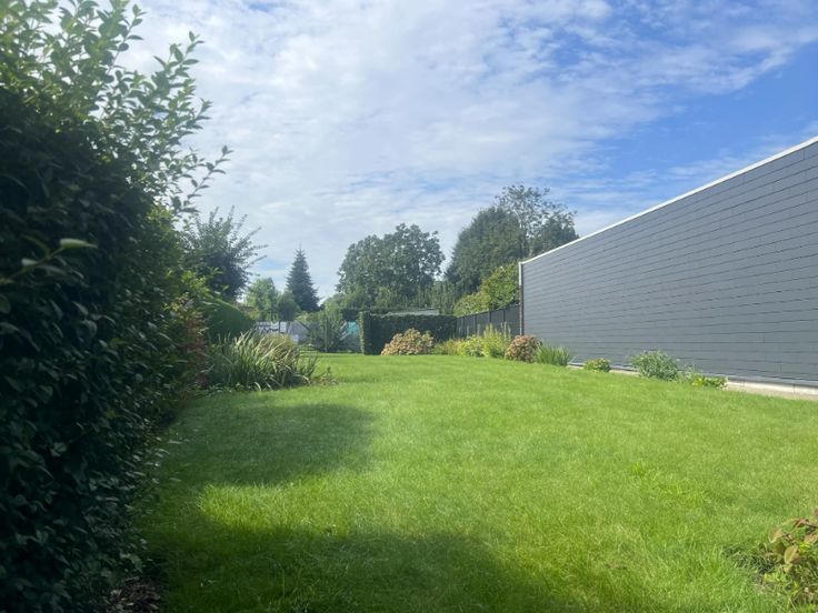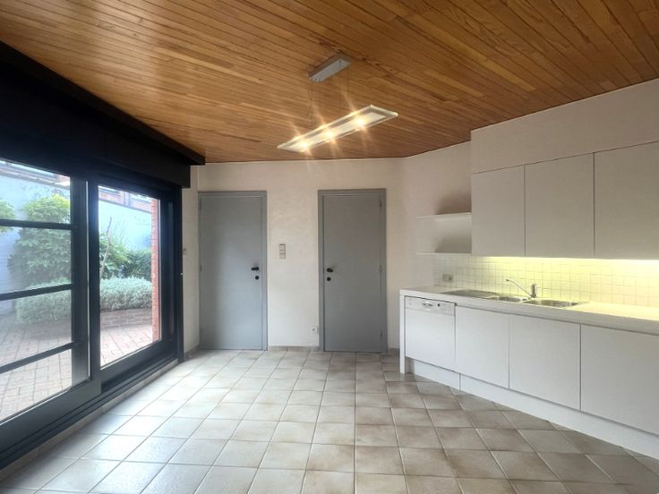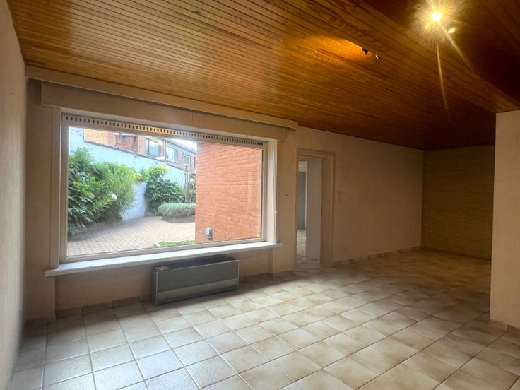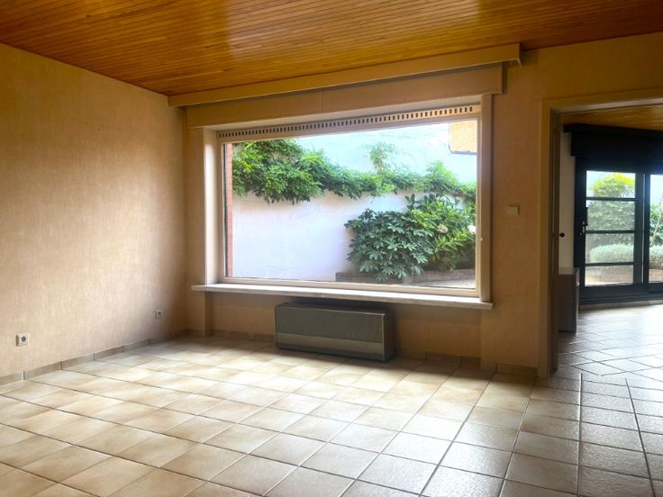 gelijkvloers : ruime inkom-/traphal, grote en klare living, volledig ingerichte keuken (van Obumex), voorraadkamer, sas, wasberging, badkamer met toilet, garage, binnenkoer, aangelegde en omheinde tuin