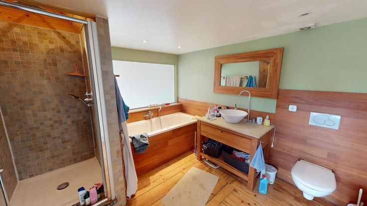 Op de 2e verdieping, twee ruime slaapkamers van 18,5 m² en 14 m², evenals een badkamer met een douche, bad, wastafel en toilet.