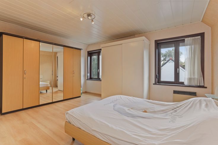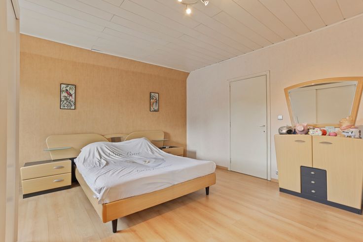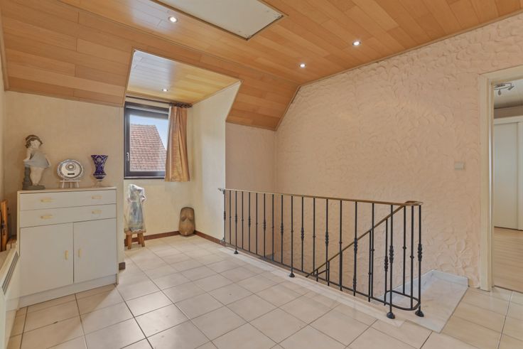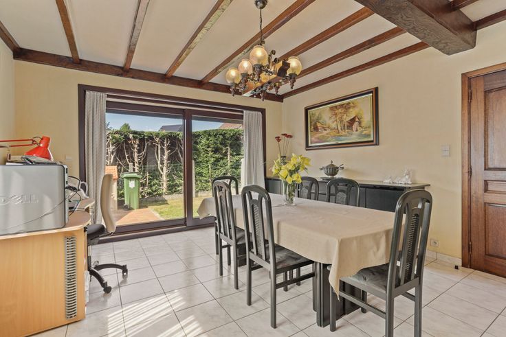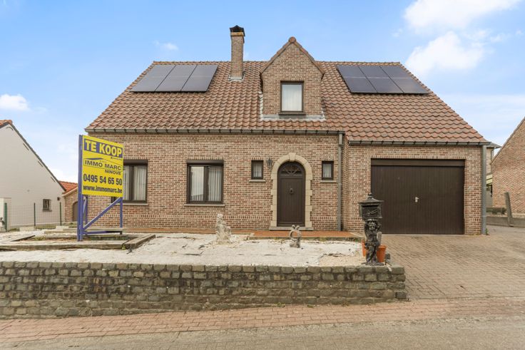 in een rustig doodlopend straatje bevindt zich deze OPEN BEBOUWING met garage , 3 staanplaatsen en kleine tuin. De woning is ingedeeld met ruime inkomhal met trap - gastentoilet - ruime living met zicht op de tuin - afzonderlijke ruime ingerichte keuken voorzien van alle apparatuur - garage en ruime bergruimte. De bovenverdieping omvat ruime nachthal - 3 slaapkamers en ruime badkamer (ligbad / douche / badmeubel met 2 lavabo's), de ruime nachthal biedt de mogelijkheid voor het plaatsen van een trap zodanig op de ruime zolder nog slaapkamers kunnen bijgemaakt worden. Het dak is voorzien van 12 zonnepanelen, verwarming op elektriçiteit. Renovatieplicht: onbekend