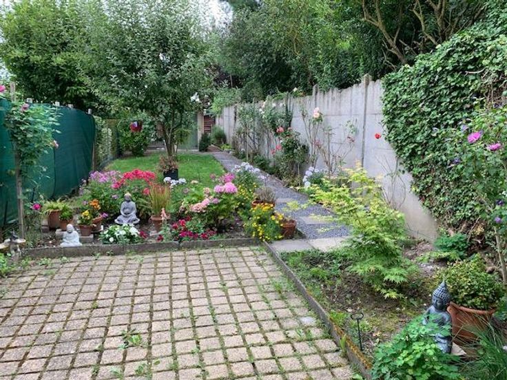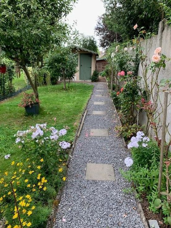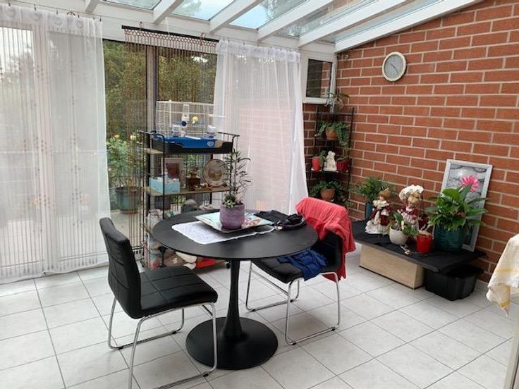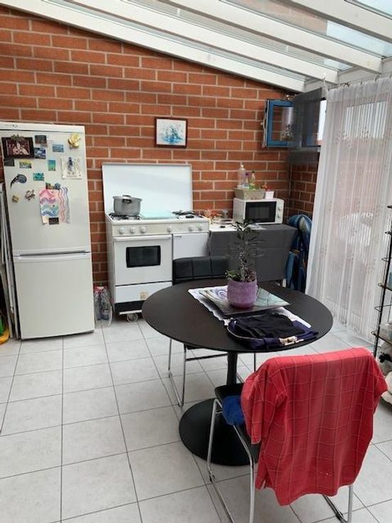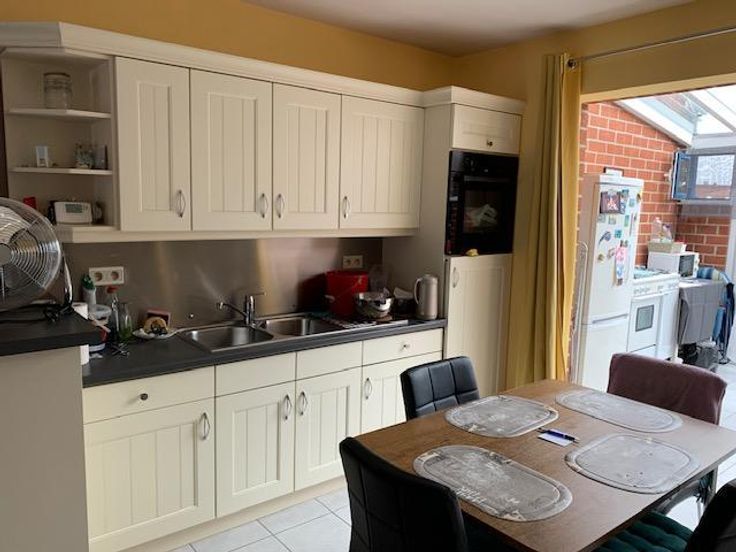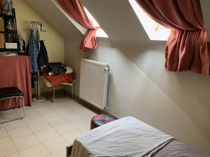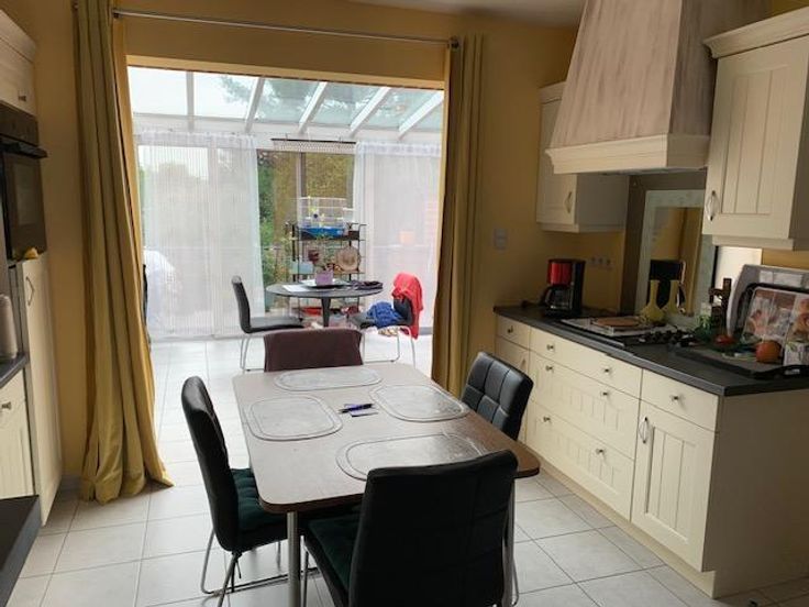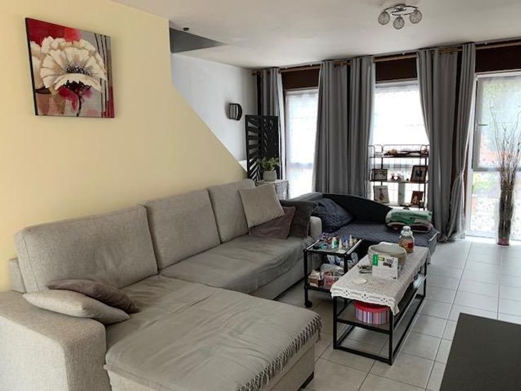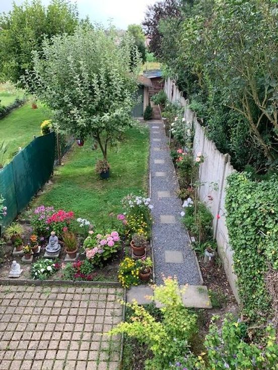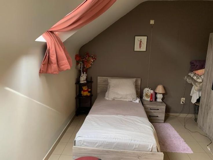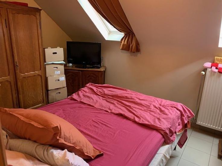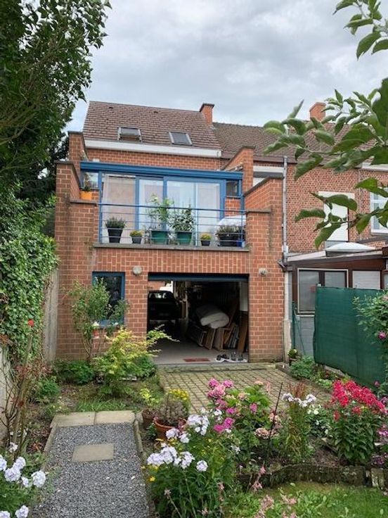 Maison 3 façades sur 2 ares 60 centiares comprenant: -au rez-de-chaussée: grand garage (porte électrique), hall -au 1er étage: living avec cuisine ouverte (double évier, frigo, four, taque électrique, lave-vaisselle), véranda avec grande terrasse, wc -au 2e étage: une chambre à l'arrière, une chambre à l'avant, une salle-de-bain (douche, bain, évier) -au 3e étage: un grenier Jardin agréable avec cabanon Châssis double-vitrage PVC Chauffage central gaz