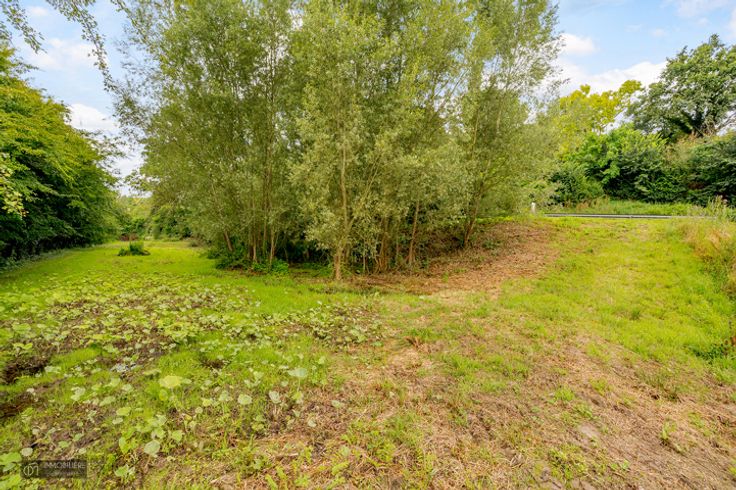 Vlak terrein, onder de weg, met een breedte van meer dan 60m en een diepte van +-58m - vergunning verleend - achterzijde ZUID gericht - gelegen buiten verkaveling - vrij van bebouwing - deel van grond in gevarenzone lage overstroming. Aansluitingen beschikbaar op straat: water en elektriciteit.