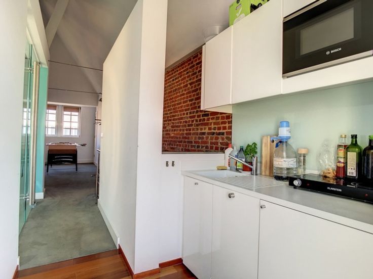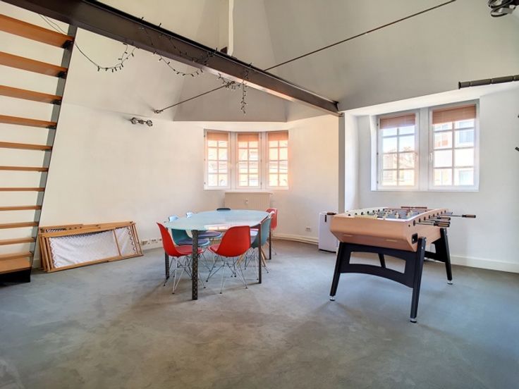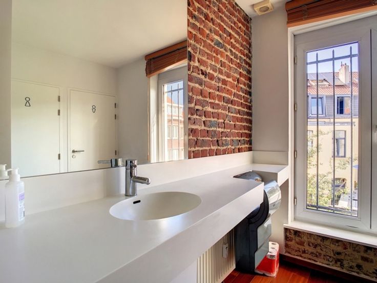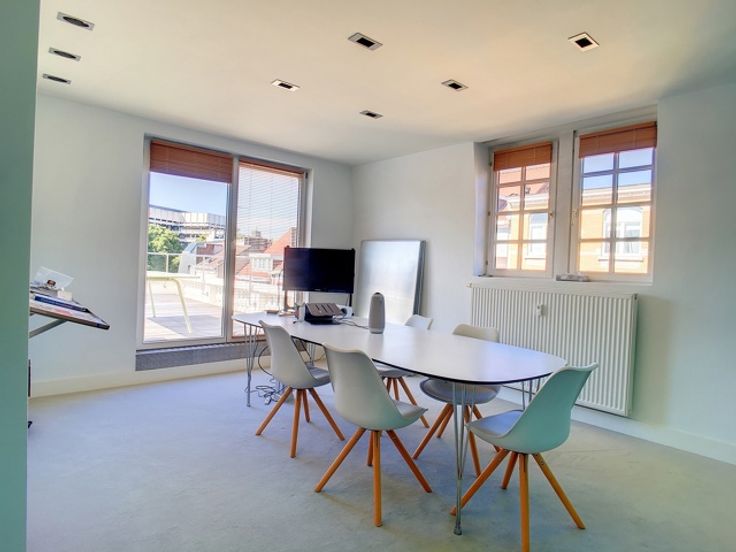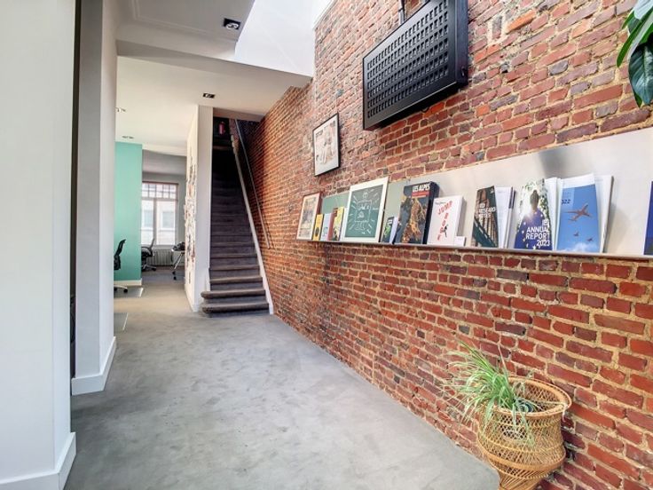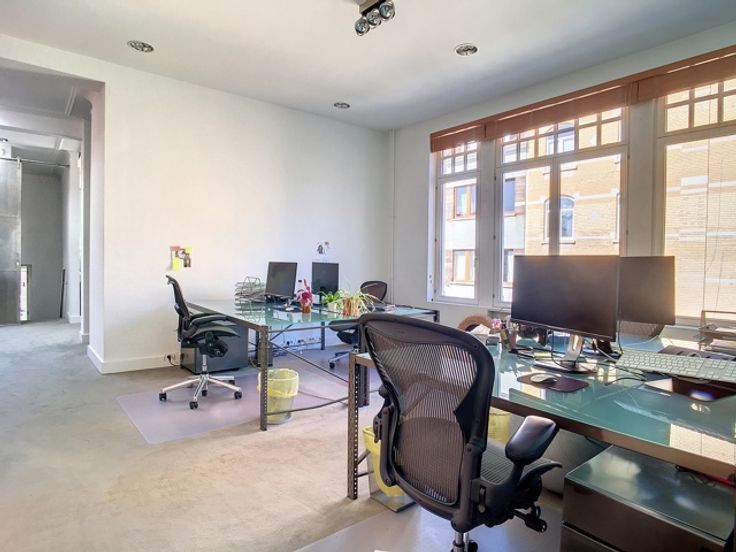 Het gebouw is volledig gerenoveerd in 2003 en bestaat momenteel voor 100% uit kantoorruimte, verdeeld over 4 verdiepingen en 2 duplexen. Elk heeft ruime kantoren, een kitchenette en toiletten. Groot terras op het zuidwesten.