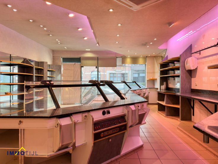 Deze handelswoning beschikt op het gelijkvloers over een polyvalente winkelruimte, hiervoor uitgebaat als slagerij (kan ingericht worden als woonkamer/hobbyruimte/praktijkruimte/handelsgelijkvloers) en een ruime in te richten keuken. Op de 1ste verdieping vindt men de woonkamer, een veranda en een slaapkamer. Op de bovenste verdieping zijn 2 slaapkamers en een opbergruimte terug te vinden.