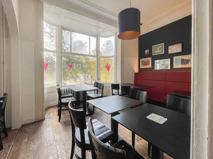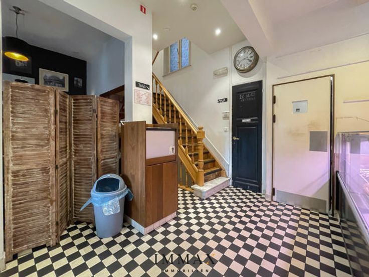 Omvat een gelagzaal met open keuken en 8 zitplaatsen + 30 zitplaatsen op terras en op de eerste verdieping is nog eens plaats voor 26 personen. De tweede verdieping bevat een appartement. De kelderverdieping bevat een ingerichte werkruimte met koeling en diepvriescel en toiletten.