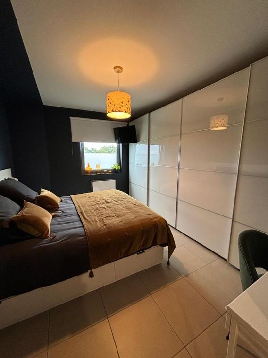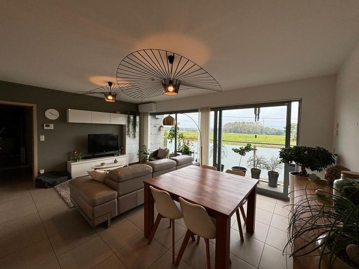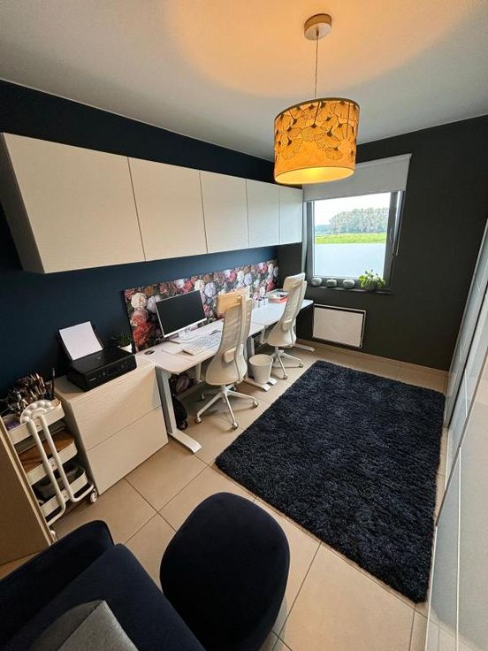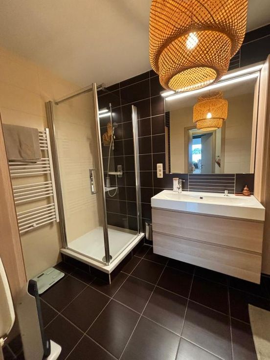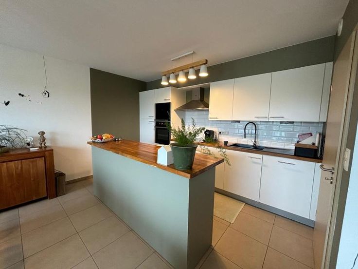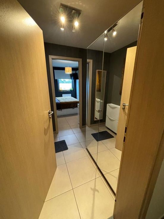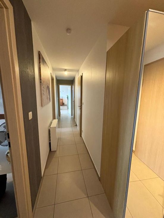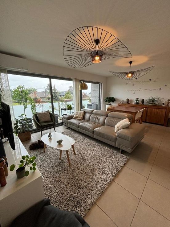 Bel appartement au 1er étage avec ascenseur . Grande pièce à vivre , très lumineuse. Belle cuisine équipée et moderne. Une buanderie avec cellier attenant .WC séparé. Un bureau est aménagé ( possibilité de chambre) une chambre. Salle de bain ( douche- baignoire-lavabo) il y a un balcon vu sur les champs. Un garage est disponible au sous-sol et l'appartement dispose d'une cave. Double vitrage VMC (système d'aération) double flux. Pompe à chaleur( consommation basse) Chauffage et clim. Charges communes (+/- 100€ /mois) +/- 100€ pour consommation personnelle ( électricité)