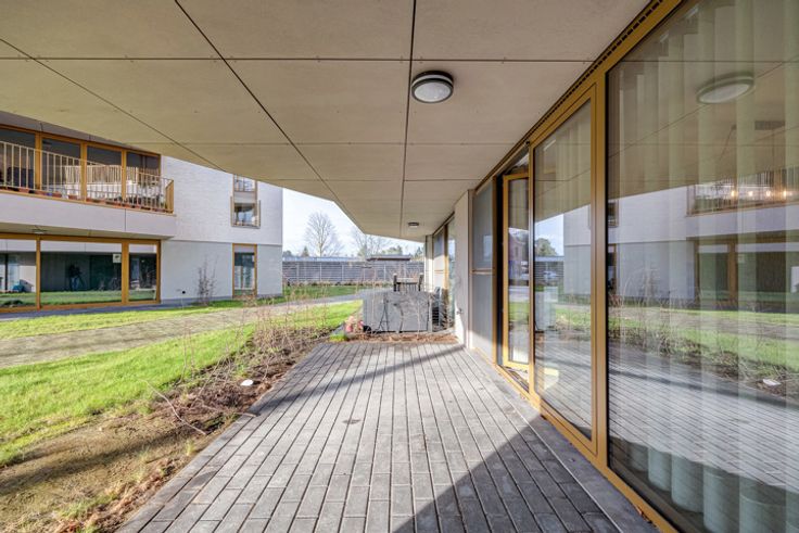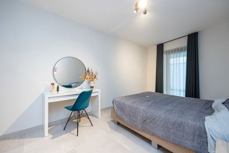 INDELING De inkomhal met vestiairekast op maat geeft toegang tot de 2 slaapkamers ca.10m² en 16 m² en het apart toilet. Een badkamer voorzien van douche en lavabo. Mooie leefruimte 35 m² op tegel met open keuken voorzien van de nodige toestellen. Aansluitend de keuken bevindt zich de berging/ wasplaats. De leefruimte geeft via een schuifraam toegang tot het overdekt terras. BIJZONDERHEDEN Luxueus afgewerkt appartement voorzien van vloerverwarming en ventilatie dat voldoet aan de hedendaagse normen qua energieverbruik. Appartement wordt verkocht onder registratiestelsel, niet onder BTW stelsel. Verplicht bij aan te kopen: 2 ondergrondse autostaanplaatsen en kelderberging voor €35000 POSITIEVE ASPECTEN Nieuwstaat Hoogwaardige afwerking Energiezuinig Gelijkvloerse verdieping Project "Poort van Vosselaar"