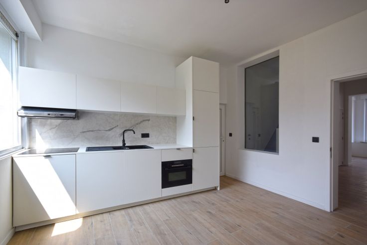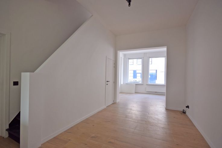 Ruime inkomhal. De leefruimte baadt in het daglicht en sluit naadloos aan op de gloednieuwe, eigentijdse en volledig uitgeruste keuken. Verder vindt u op het gelijkvloers een apart toilet, een grote wasplaats/ berging.
