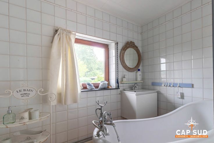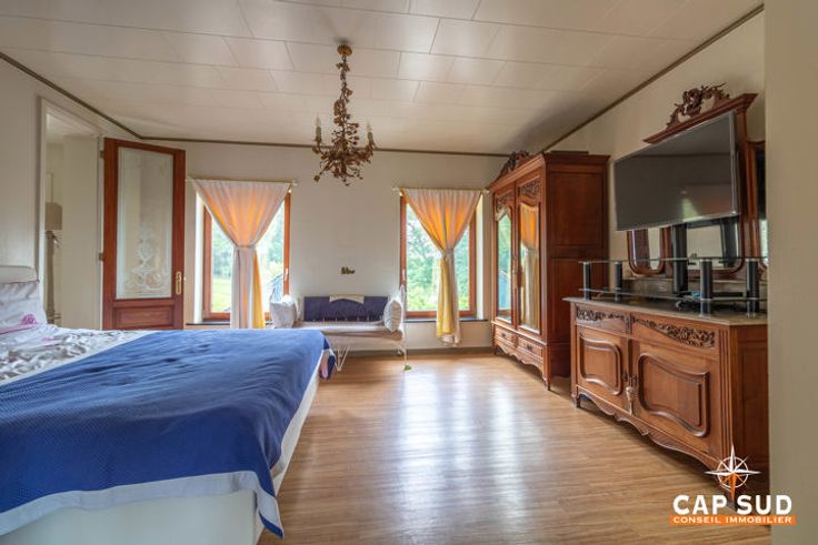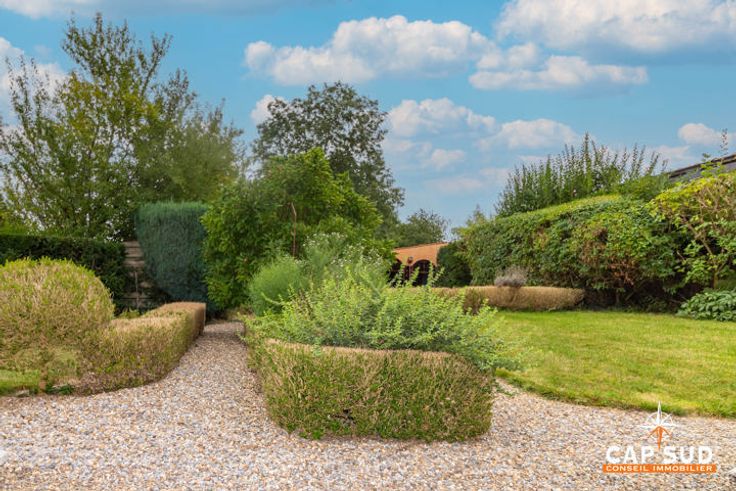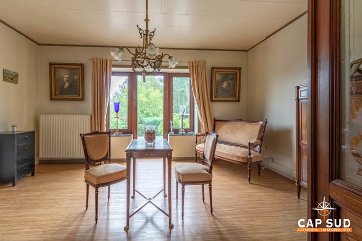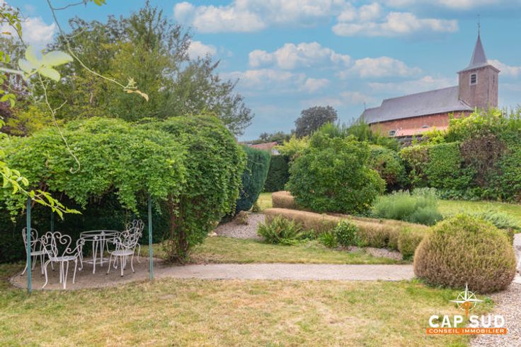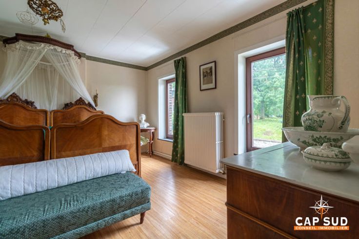 Het huis aan de rechterkant biedt ongeveer 160 m2 woonruimte, ook hier met een grote woonkamer en een tweede, kleinere zitkamer met uitzicht op de tuin, een keuken, een bijkeuken en een doucheruimte, twee mooie slaapkamers op de eerste verdieping, een grote zolder die verbouwd kan worden en kelders. De tuin, die gedeeld wordt door de twee huizen, is prachtig aangelegd en beplant met bomen.