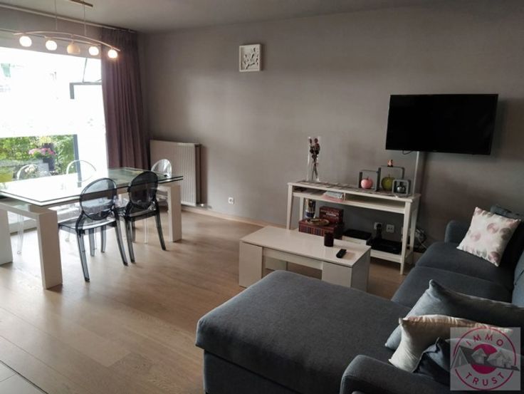 Situé proche de la chaussée de Haecht, beau rez de chaussée de 60 m² avec terrasse et petit jardin se composant d'un séjour de 35 m², cuisine US hyper équipée, une chaambre, une salle de bain, local à vélos,cave et emplacement parking. Charges de 70 euros (communs). Libre 01/10. PEB C-