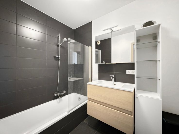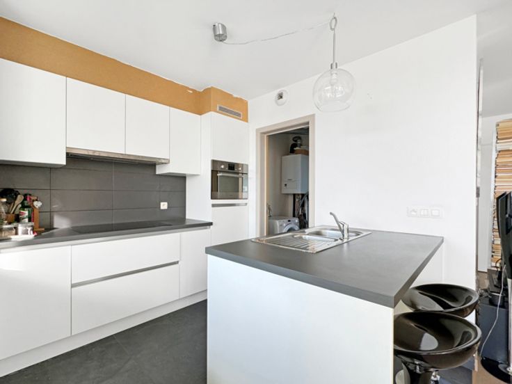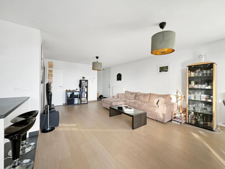 Neder-Over-Heembeek, Beyseghemstraat 148: op de 3e verdieping met lift van een modern gebouw uit 2015, prachtig appartement bestaande uit een lichte woonkamer (27 m²) met terras op het oosten (8,5 m²), open keuken (7,5 m²), bijkeuken, dag- en nachthal, apart toilet, 2 slaapkamers (15,5 - 11 m²), badkamer en overdekte parkeerplaats voor een auto. Videofoon, individuele gasketel, 2015 ramen met dubbele beglazing, thermostaat, ventilatiesysteem. Informatie en bezichtiging CENTURY 21 Best House 02 268 21 50