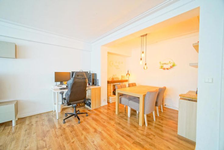 In een residentiële wijk dichtbij voorzieningen (winkels, scholen en groen), ontdek dit aangenaam en lichtrijk appartement met 2 slaapkamers van 105 m² + terras in een klein betonnen gebouw (lage lasten). Gelegen op de 3e en laatste verdieping, profiteert u van een grote inkomhal met ingebouwde berging die uitkomt op een zeer aangename woonkamer van 40 m² met voorterras. Afgescheiden van de woonkamer heb je een volledig uitgeruste keuken met toegang tot het terras. Achterzijde, nachthal met apart toilet, een badkamer en twee grote slaapkamers (20 m² en 16 m²). Overal dubbele beglazing, eigen kelder op de begane grond, gasketel en individuele meters. EPC F.