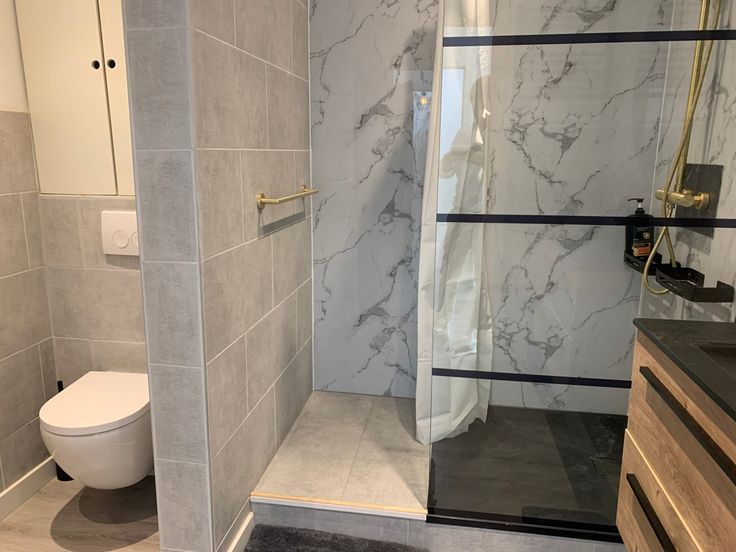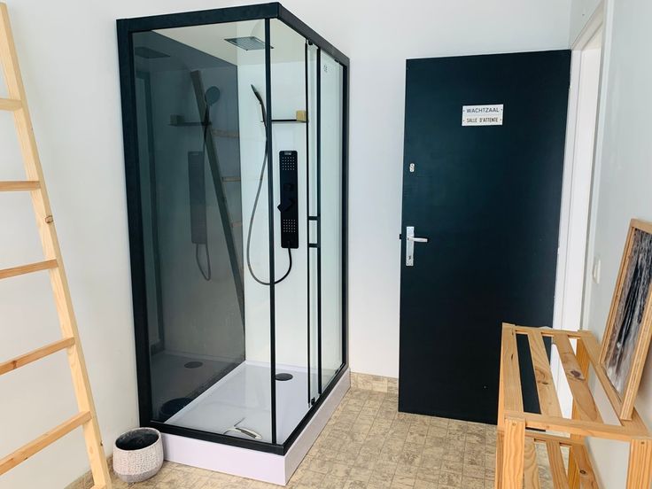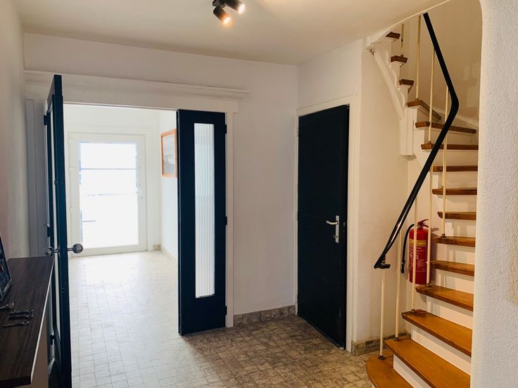 Gelijkvloers: Ruime inkomhal met toilet, douchekamer en polyvalente ruimte met extra toilet + garage met automatische poort en parkeerrplaats voor twee wagen voor de woning.