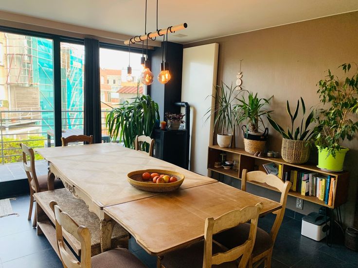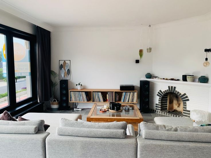 Eerste verdiep: ruime en gezellige woonkamer met open keuken, eetruimte en open haard, toilet en wasruimte, terras.